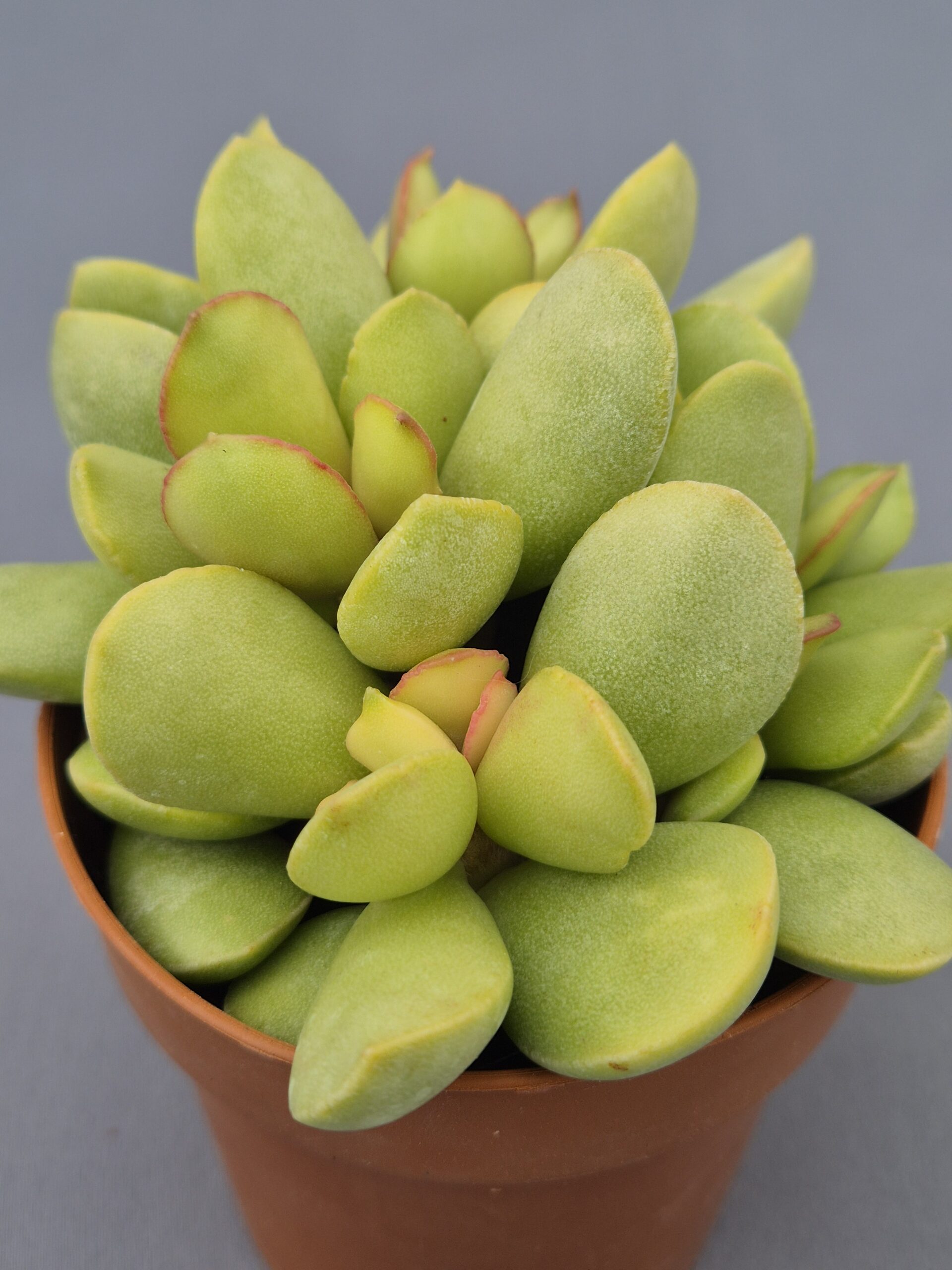 Adromischus blosianus es una suculenta de porte compacto y aspecto muy delicado, valorada por sus hojas densas y su crecimiento ordenado. Es una especie especialmente apreciada en colecciones por su elegancia natural y su fácil mantenimiento.