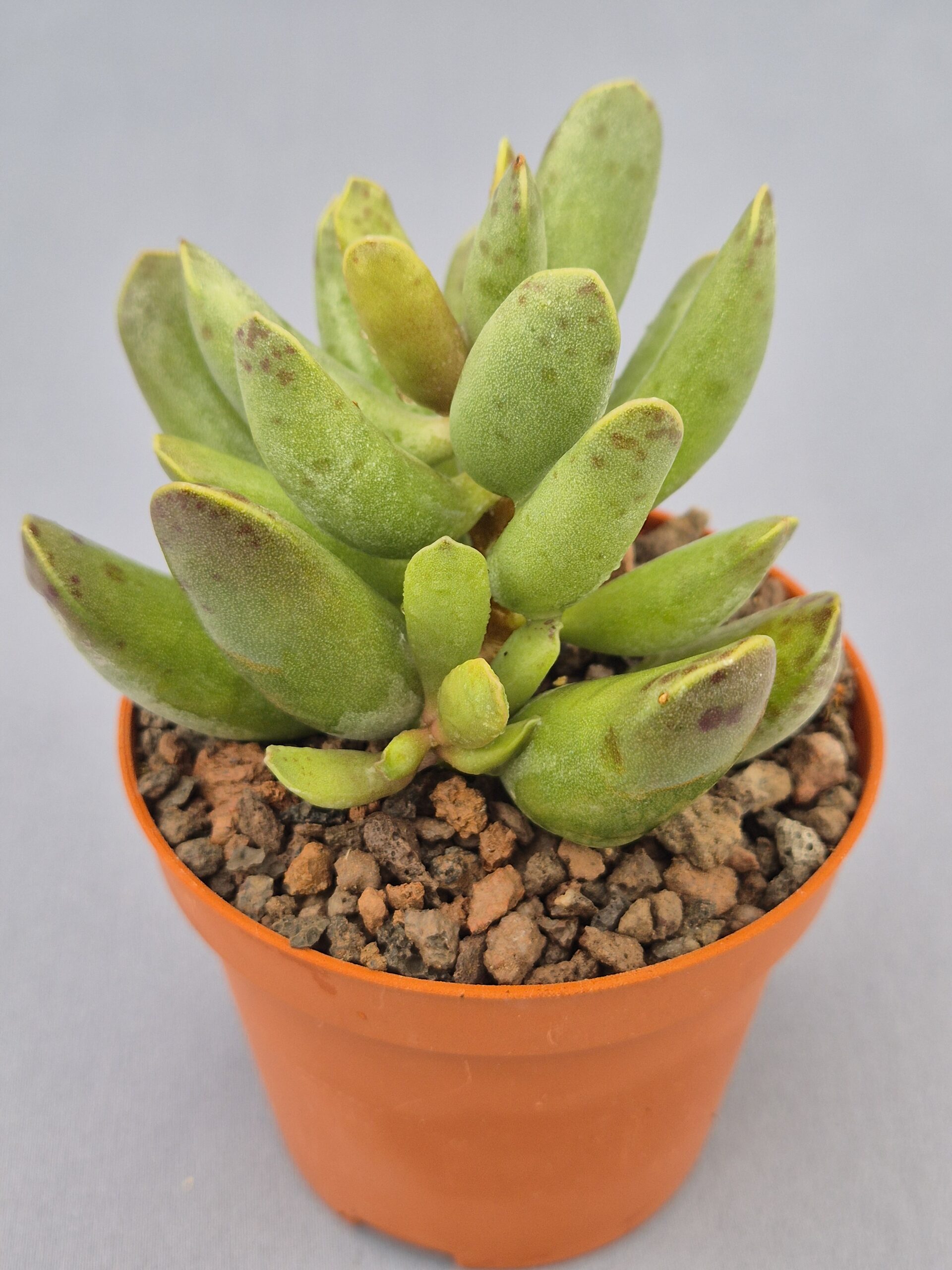 Adromischus ‘Hummel’s’ híbrido es una suculenta de pequeño tamaño y gran atractivo ornamental, muy valorada por la forma compacta de sus hojas y por las tonalidades que puede desarrollar con buena iluminación. Es una planta elegante y de crecimiento pausado, ideal para colecciones especializadas.