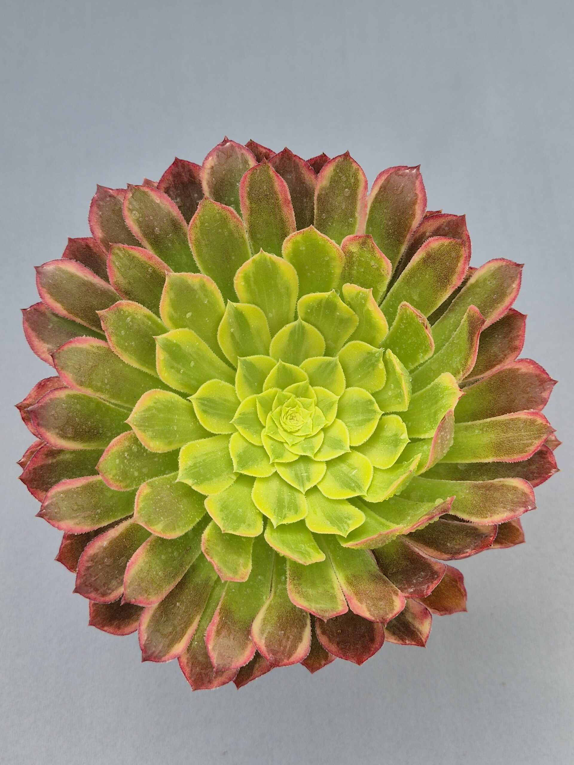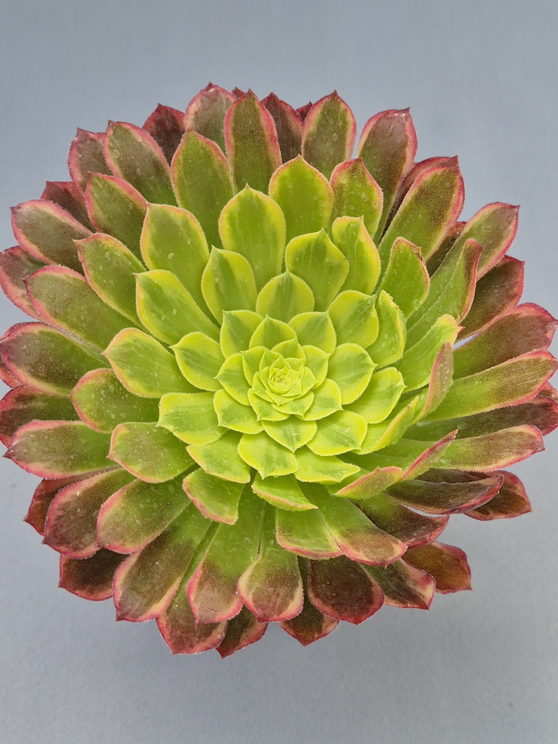 Aeonium ‘Sunrise’ es una suculenta muy decorativa conocida por su vibrante variegación en tonos verdes, amarillos y rosados. Su forma en roseta y sus colores cambiantes según la luz la convierten en una planta muy llamativa y perfecta para aportar color a cualquier colección.
