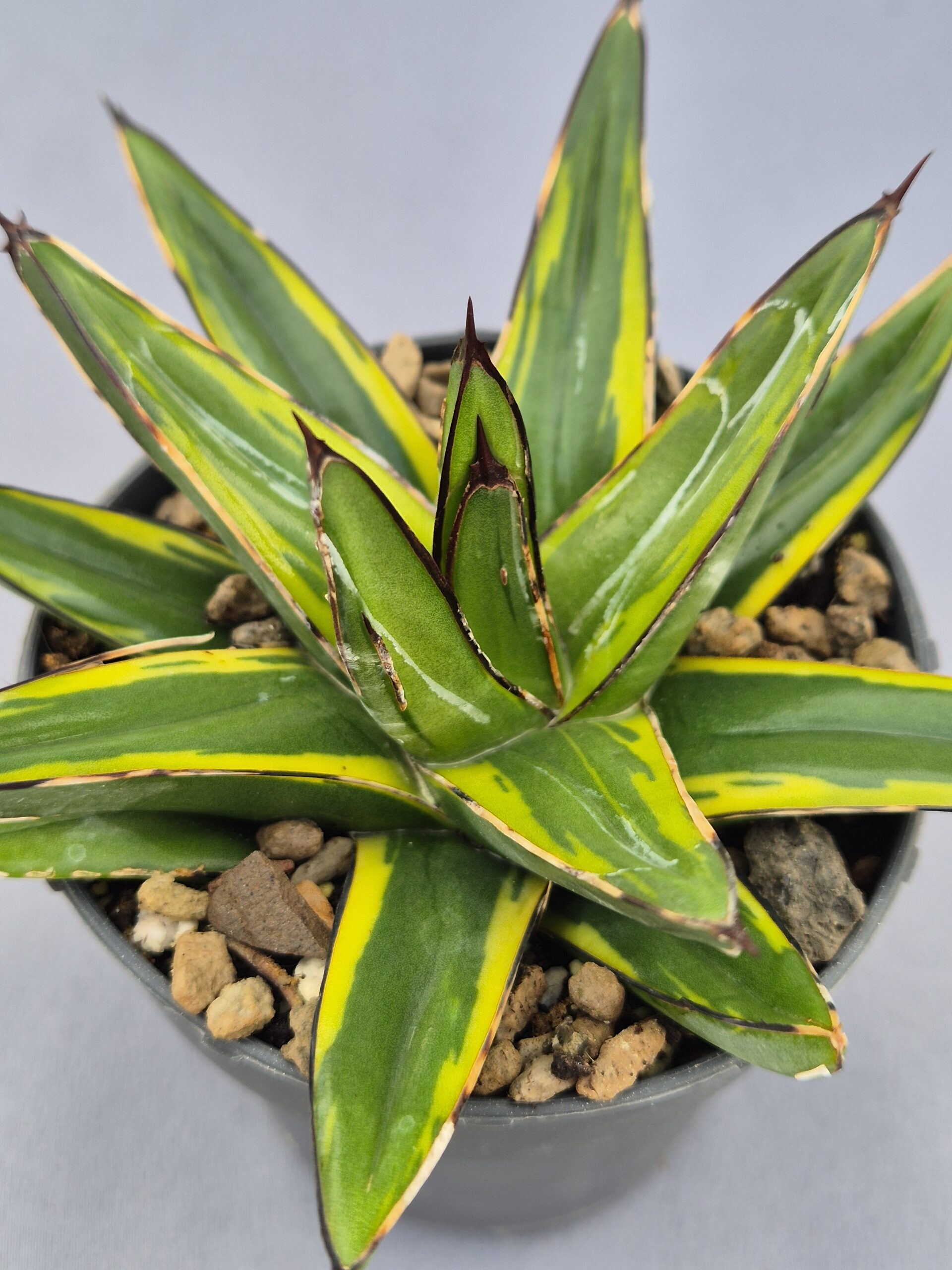 📐Tamaño: Ejemplar compacto, ideal para cultivo en maceta y colecciones de agaves variegados.