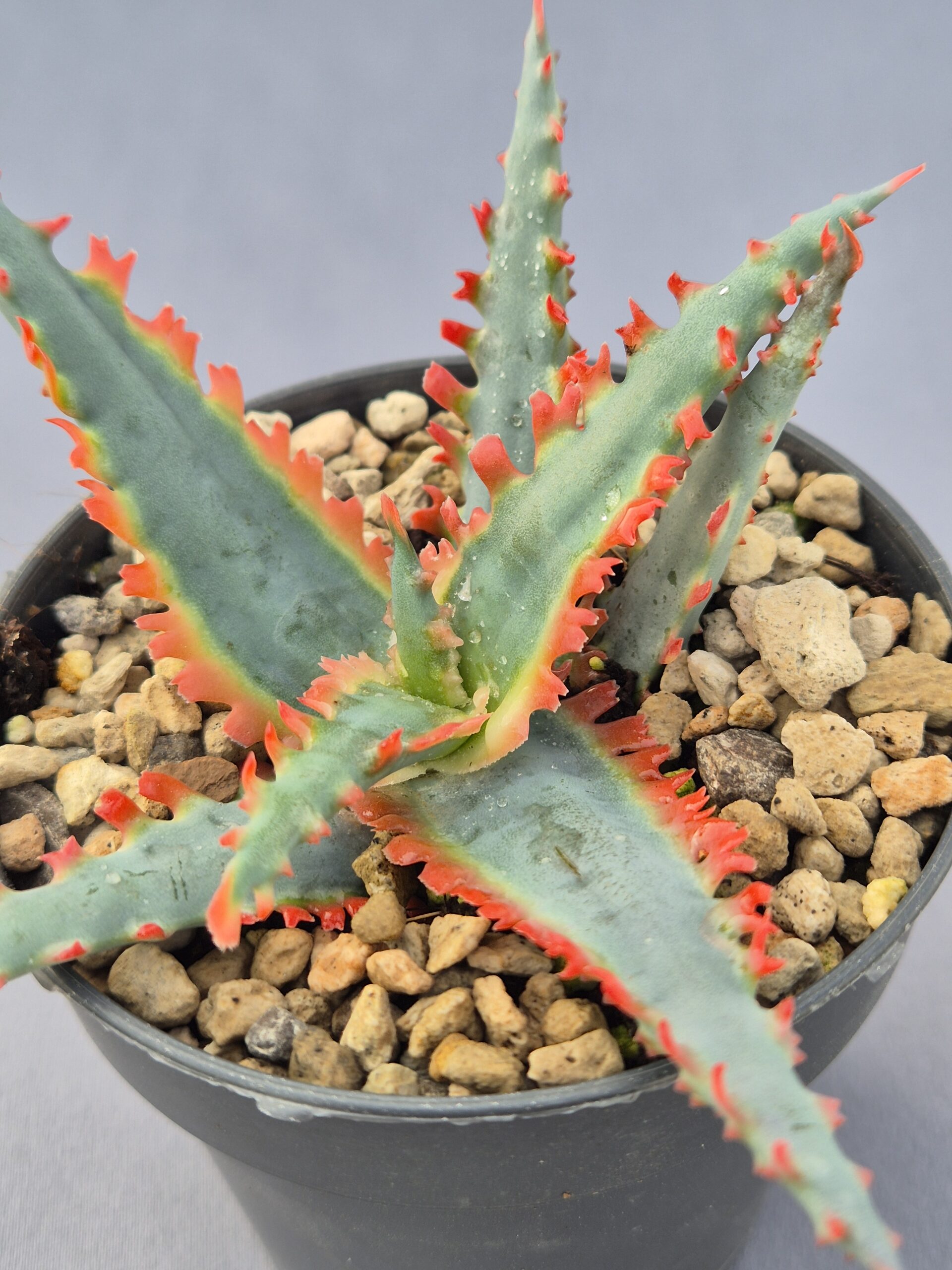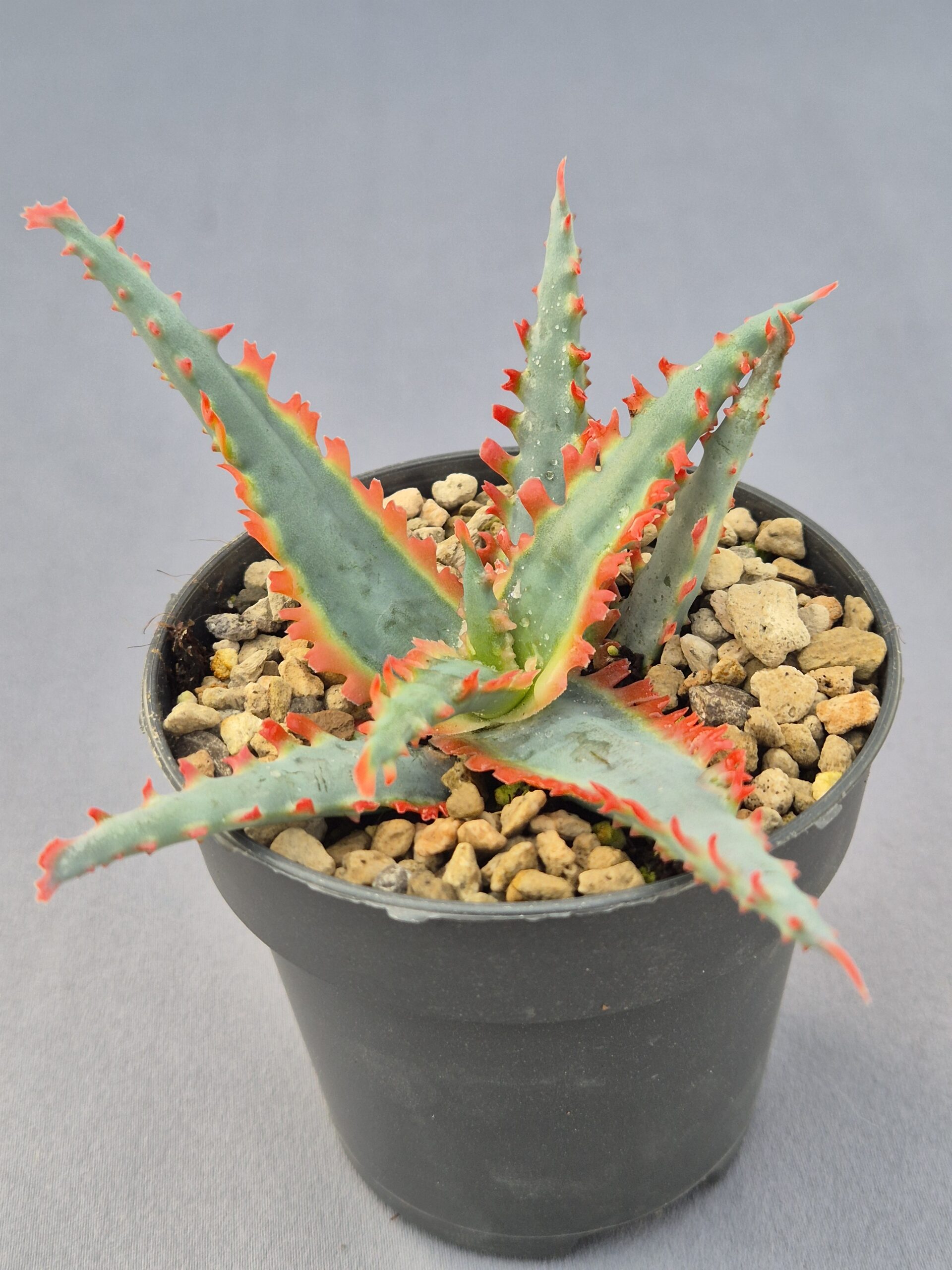 Este Aloe Sword Fish destaca por su porte dinámico y su apariencia exótica, con hojas alargadas que recuerdan a la silueta de un pez espada. Es una suculenta muy ornamental, de crecimiento compacto y gran presencia visual, perfecta para dar un toque llamativo a cualquier colección.
