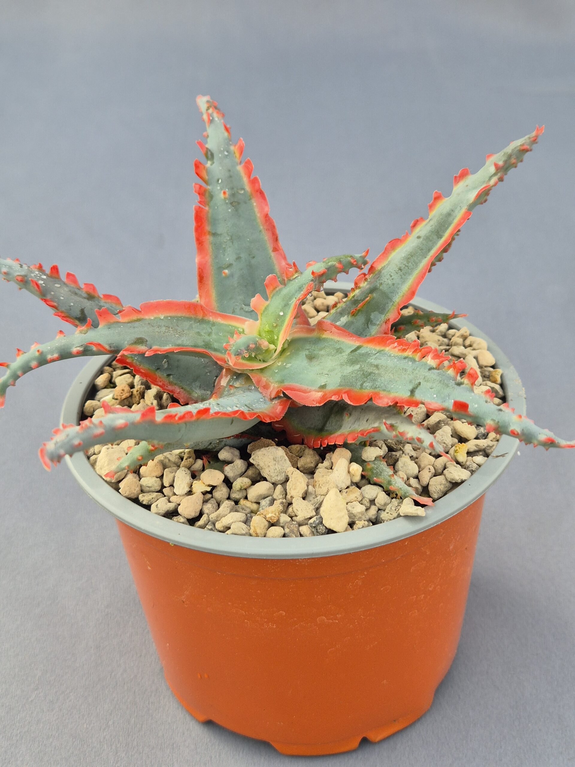 Este Aloe Sword Fish destaca por su porte dinámico y su apariencia exótica, con hojas alargadas que recuerdan a la silueta de un pez espada. Es una suculenta muy ornamental, de crecimiento compacto y gran presencia visual, perfecta para dar un toque llamativo a cualquier colección.
