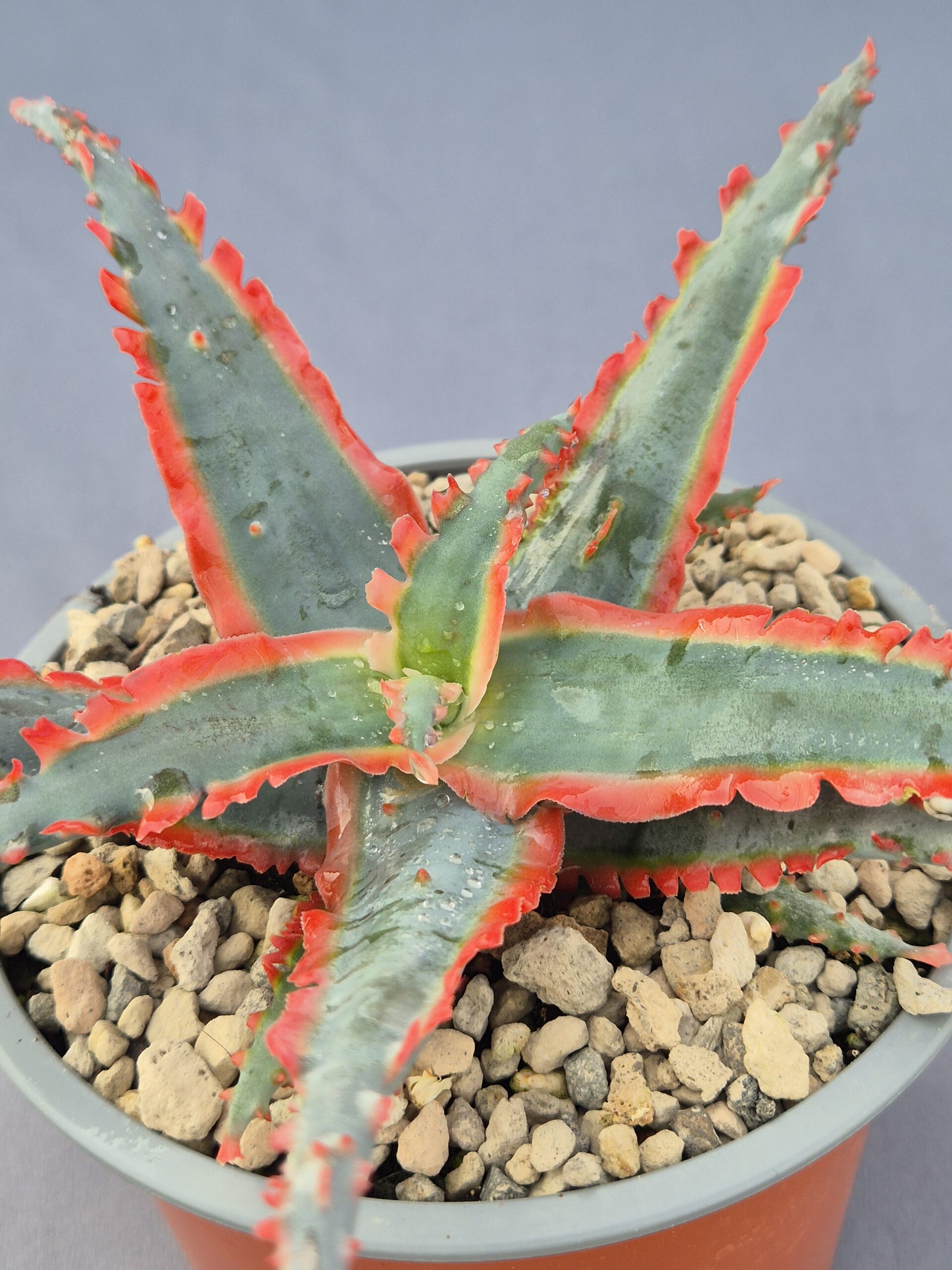 🎨Color: Tonos verde azulado en la superficie de las hojas, contrastando con bordes y dientes de un rojo intenso que se acentúan con una buena exposición a la luz.