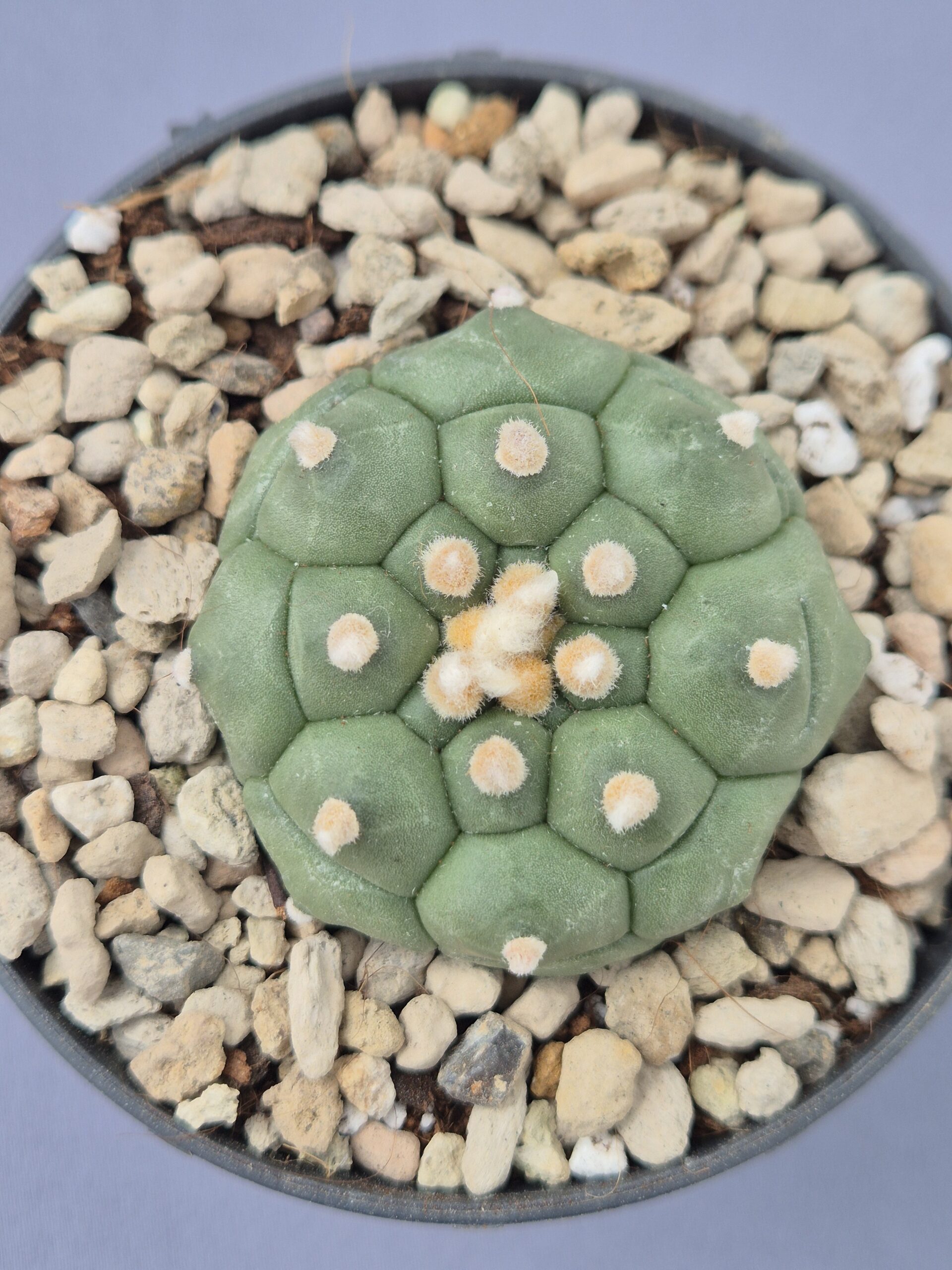🌿Cuerpo aplanado y simétrico, dividido en tubérculos prominentes típicos del cultivar ‘Kikko’, que le confieren una estructura geométrica incomparable.