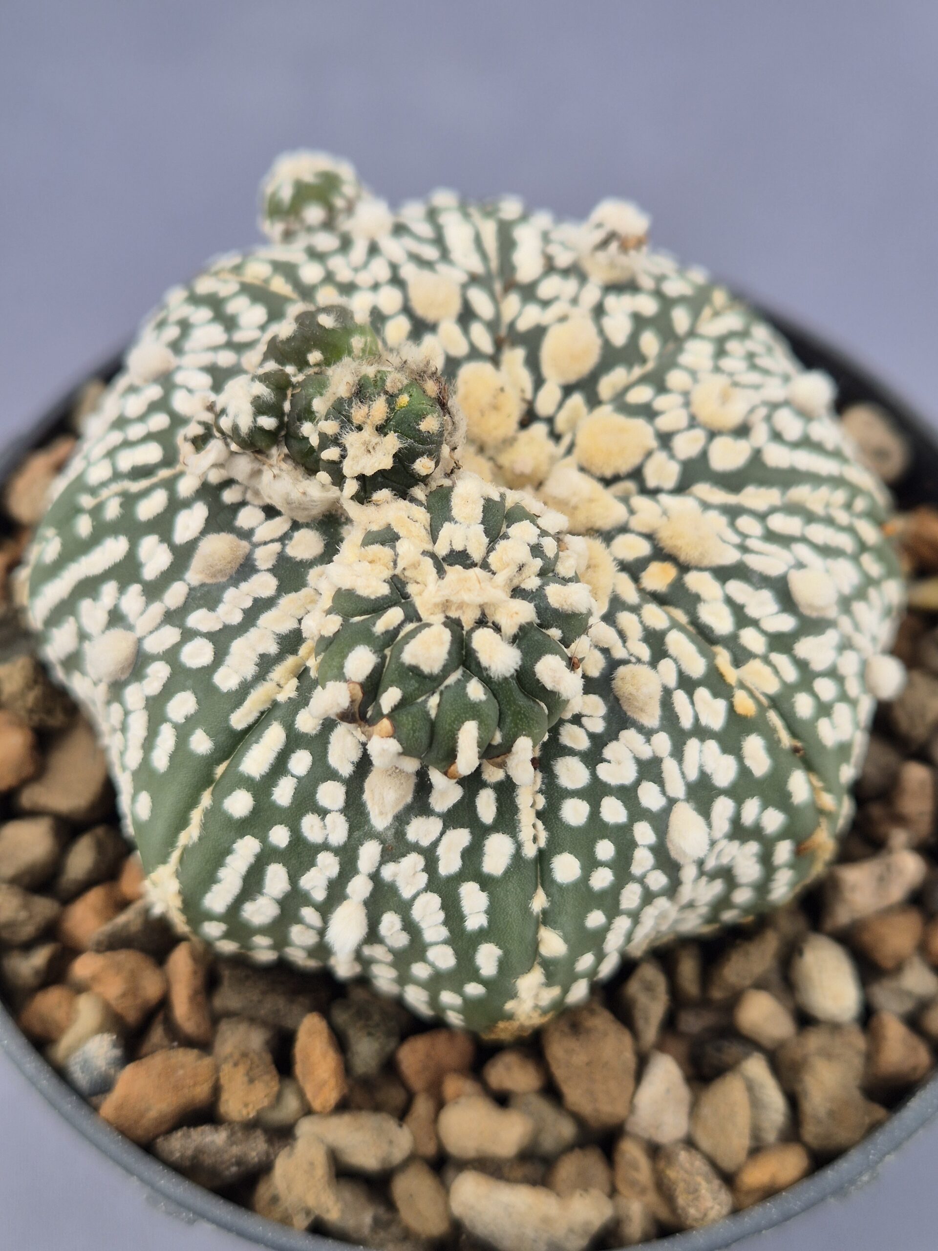 El Astrophytum Asterias monstruoso es una forma excepcional y muy rara del clásico Asterias, caracterizada por sus deformaciones naturales que crean volúmenes irregulares, crecimientos impredecibles y una textura completamente única. Cada ejemplar es irrepetible, convirtiéndose en una pieza exclusiva para coleccionistas que buscan plantas verdaderamente fuera de lo común.