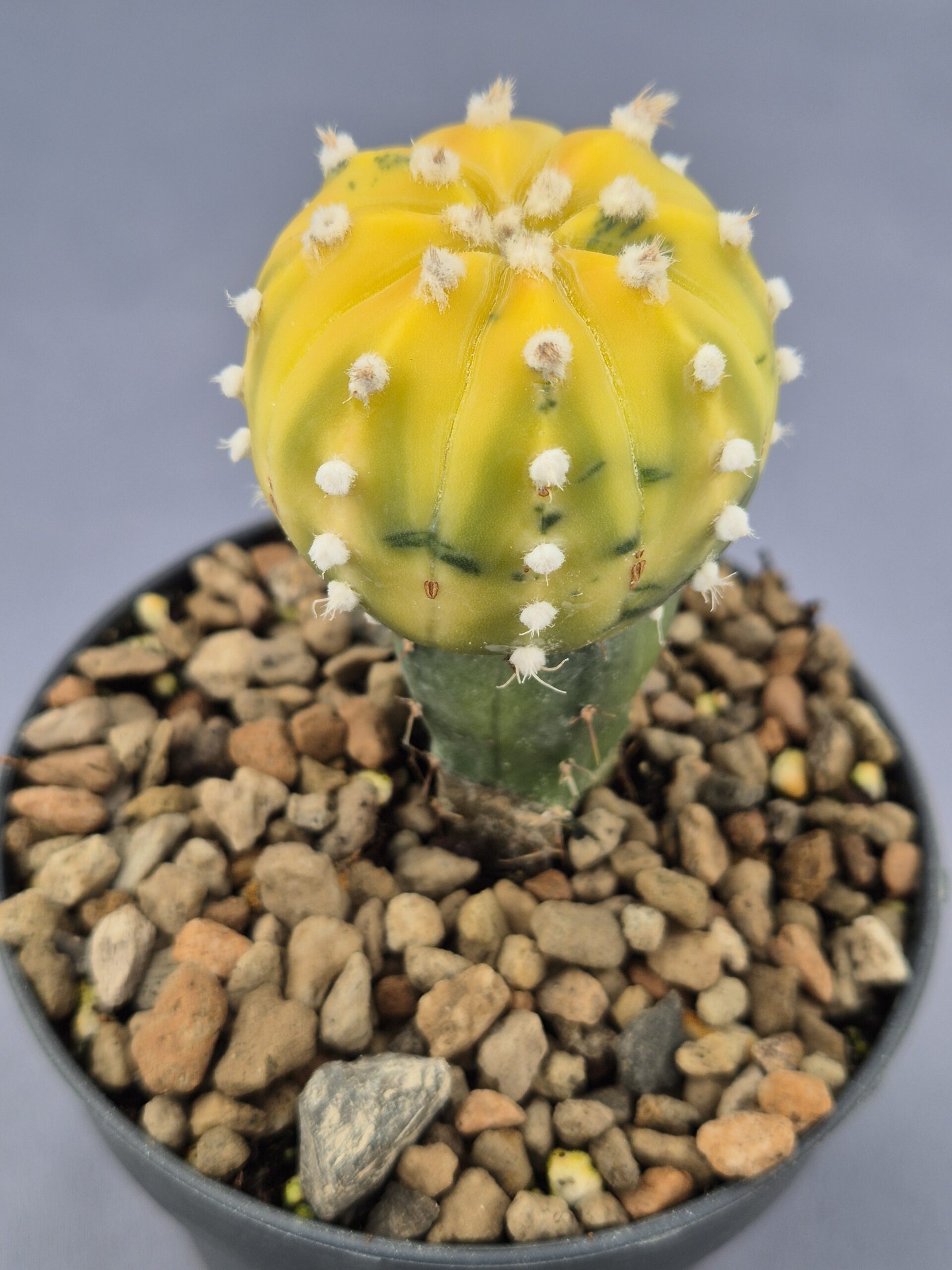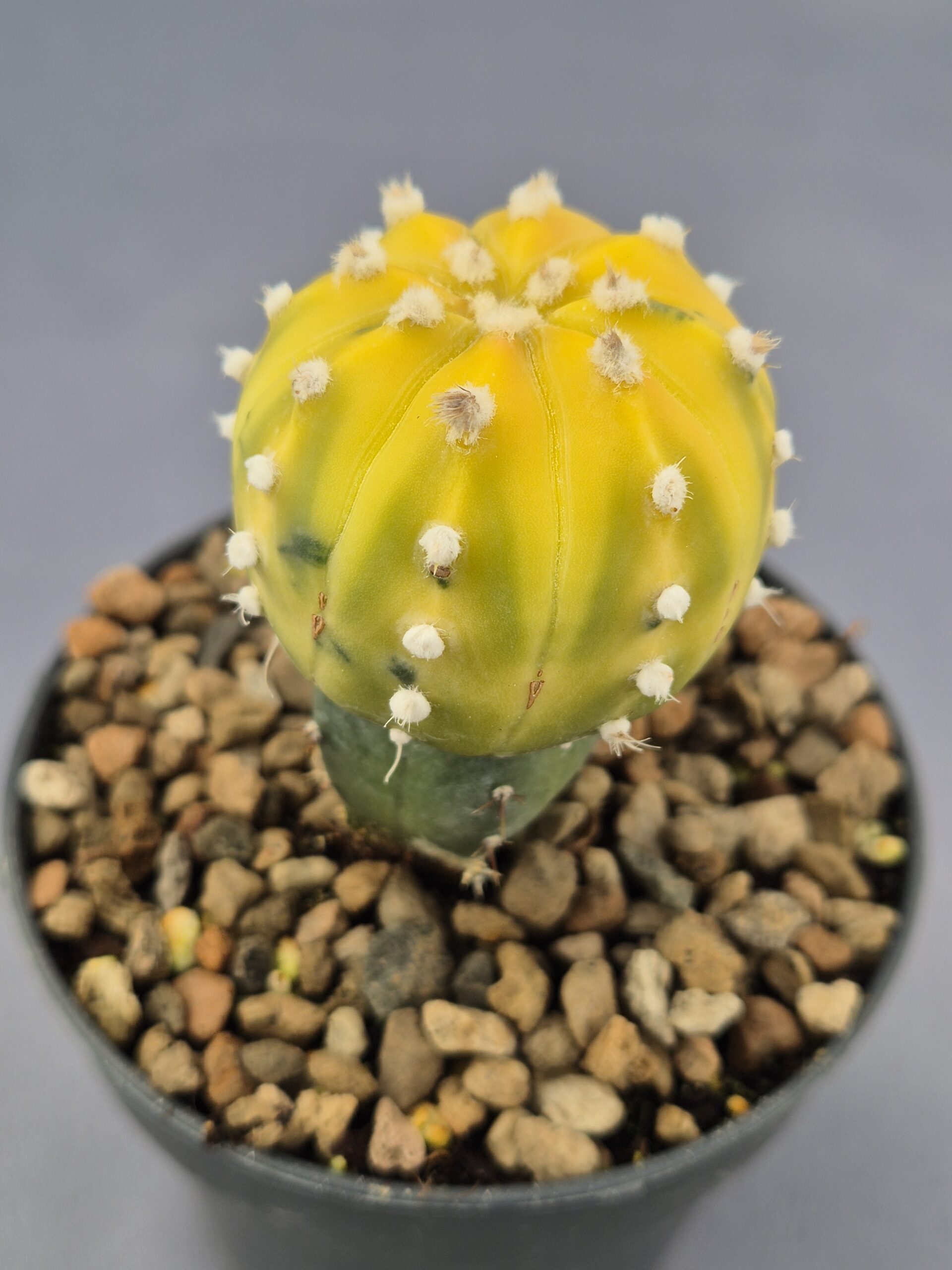 🌿Forma: Cuerpo globoso con costillas marcadas y areolas blancas y esponjosas que realzan aún más su aspecto ornamental.