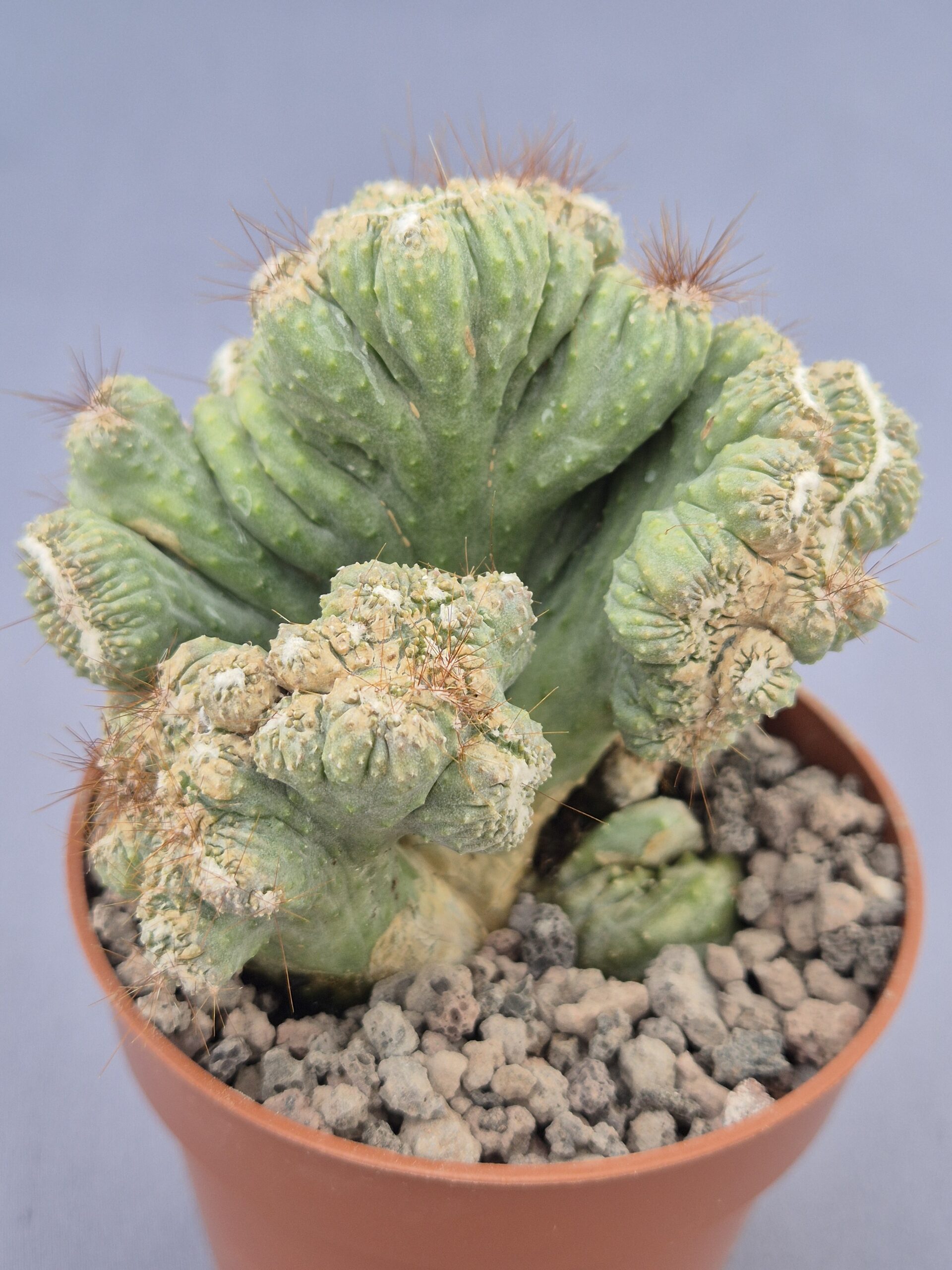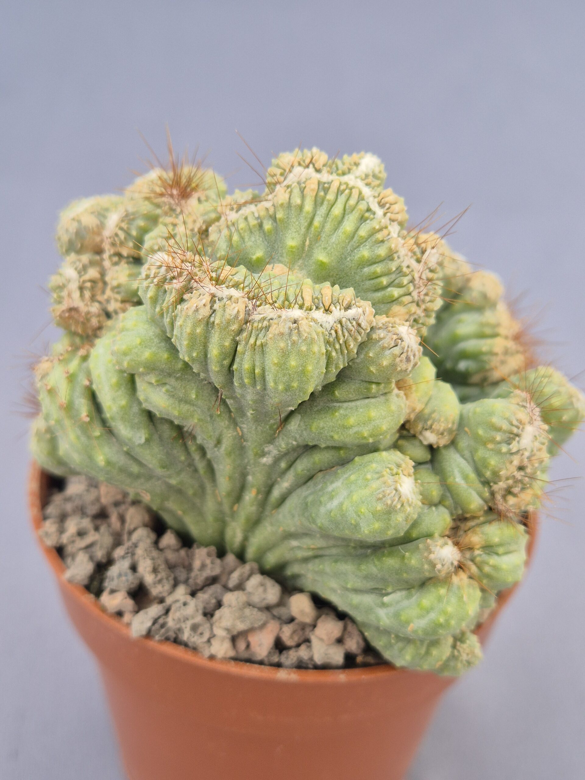 🌿Forma: crestada, con crestas irregulares y onduladas que sustituyen el crecimiento columnar típico de la especie.