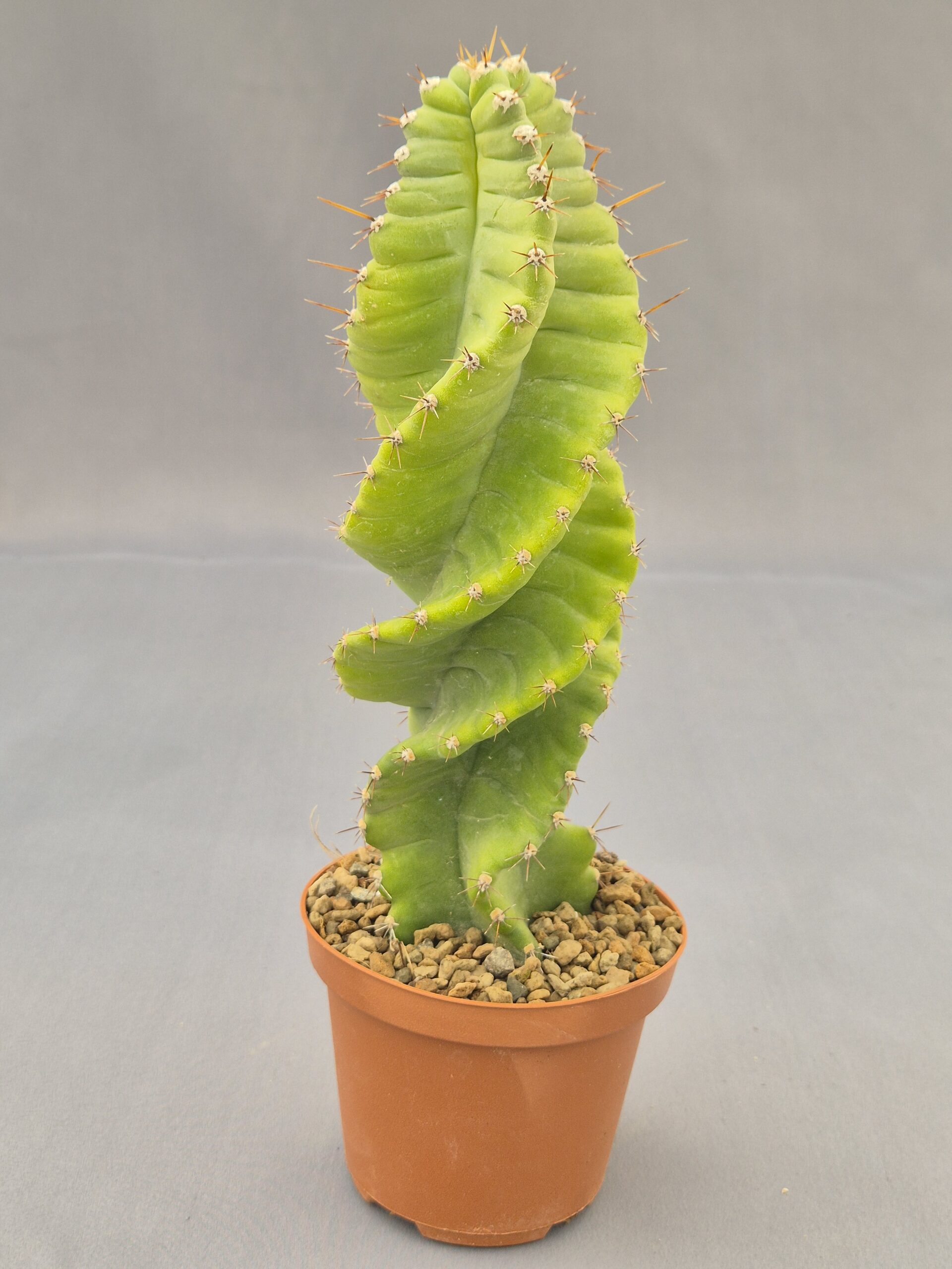 Cereus spiralis es un cactus muy ornamental conocido por su crecimiento en espiral, creando una estructura elegante y dinámica. Su forma retorcida y su porte columnar lo convierten en una planta muy llamativa, ideal para destacar en cualquier colección.