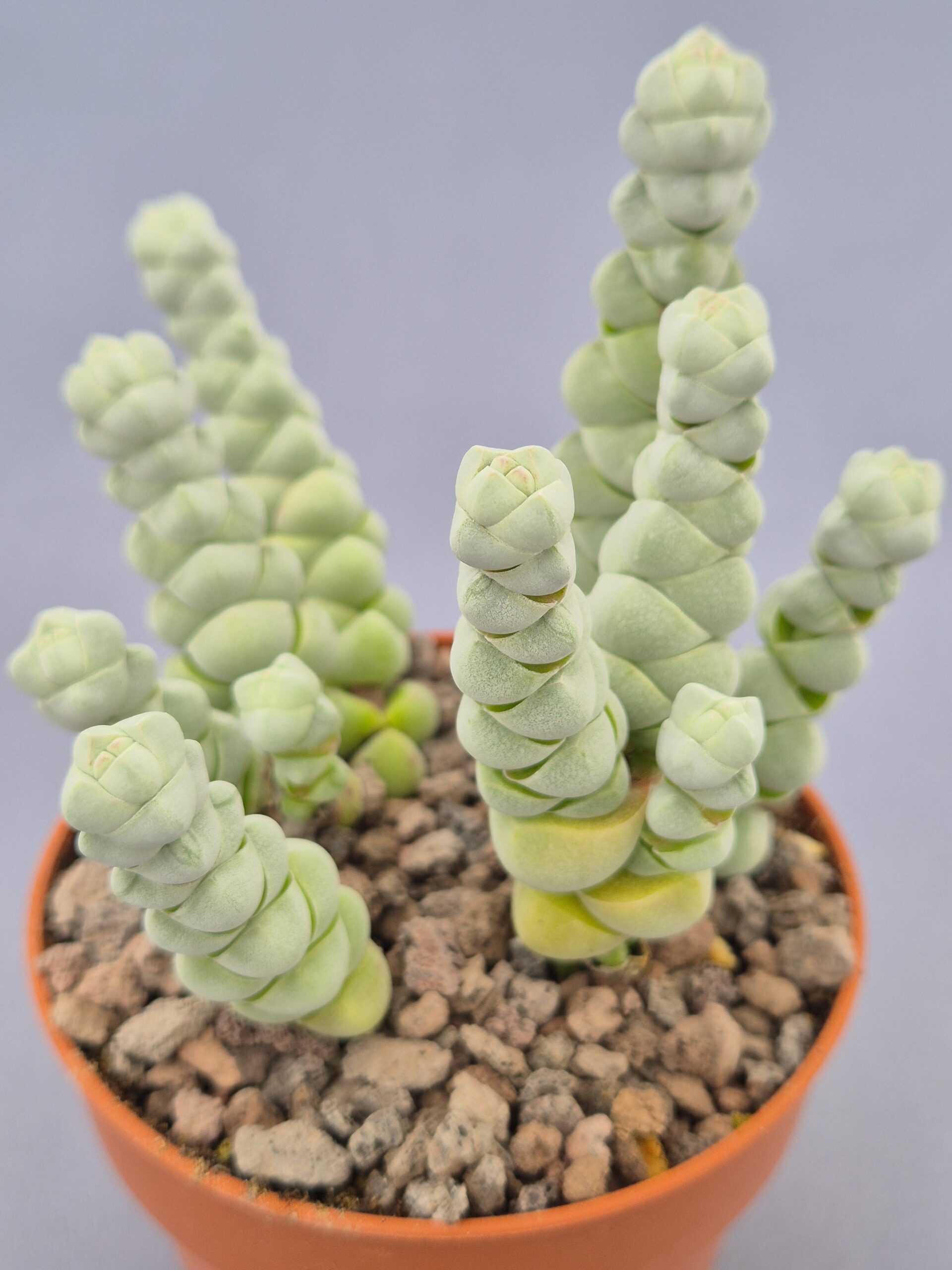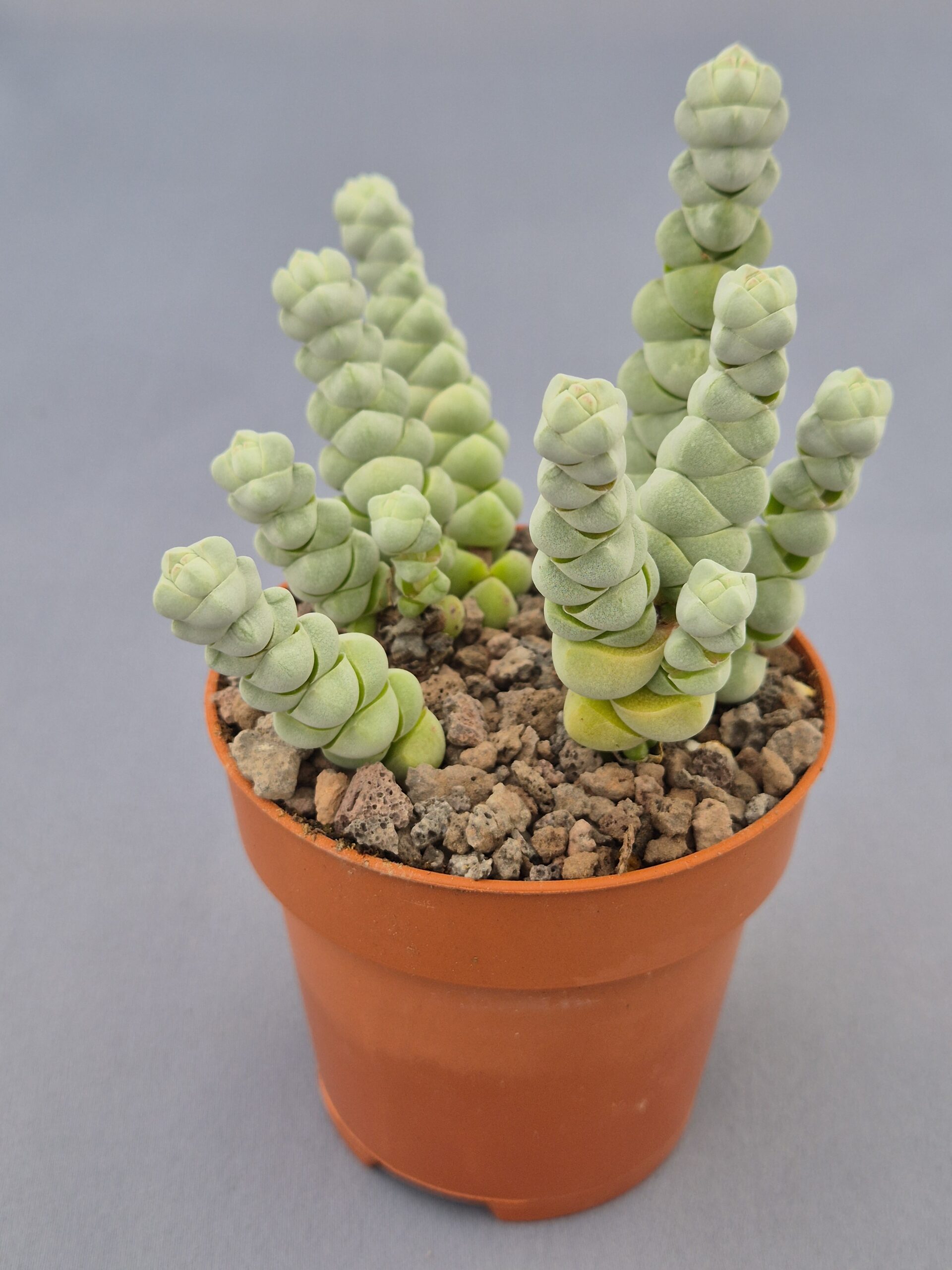 Crassula deceptor var. arta es una suculenta compacta y muy singular, apreciada por su aspecto geométrico y su crecimiento denso. Su estructura apretada y su textura firme la convierten en una planta de gran valor ornamental para colecciones especializadas.