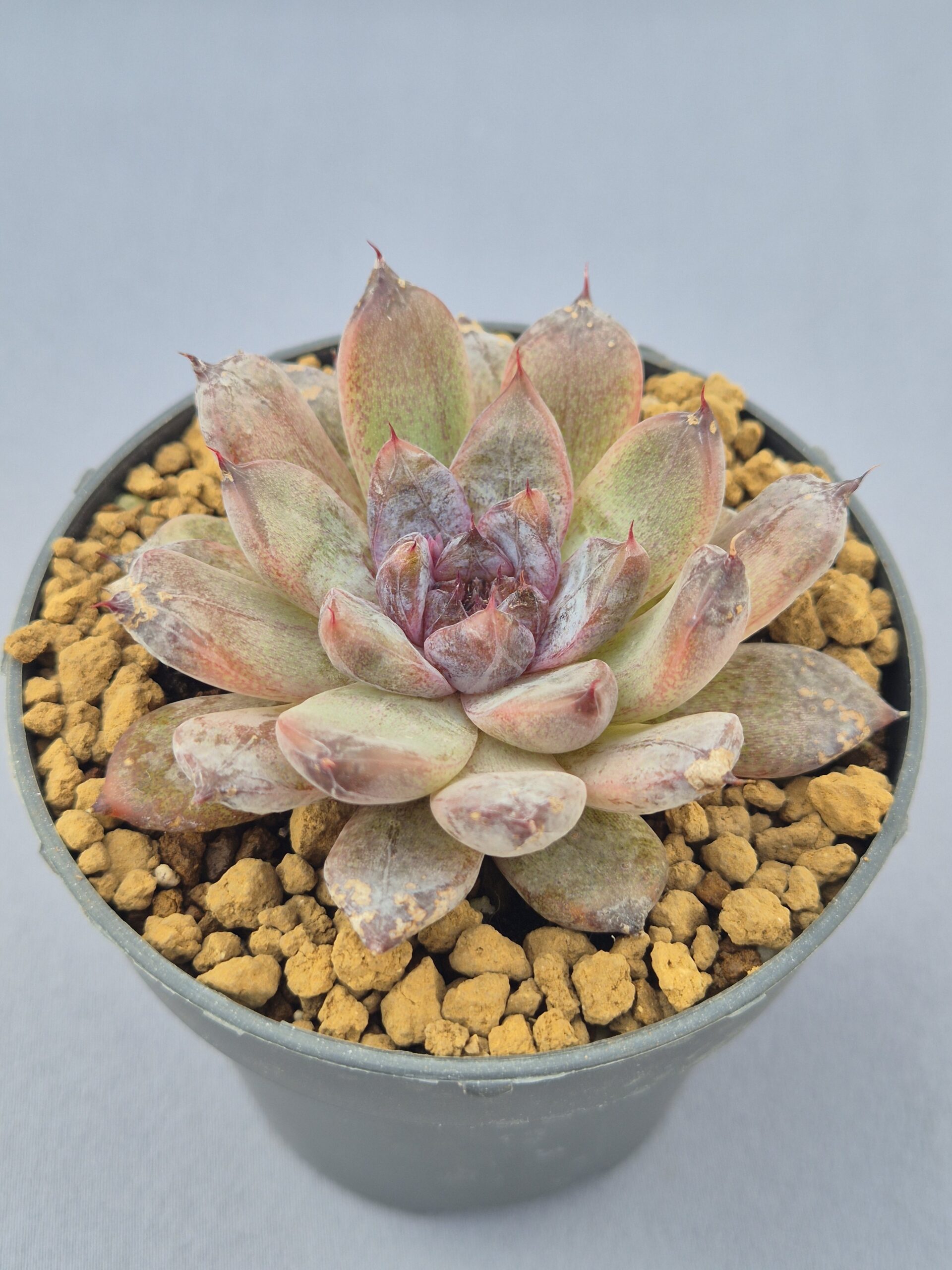 Echeveria Black Pearl es una suculenta de carácter intenso y aspecto sofisticado, muy valorada por su coloración oscura y su roseta compacta, que adquiere mayor profundidad cromática con buena iluminación.