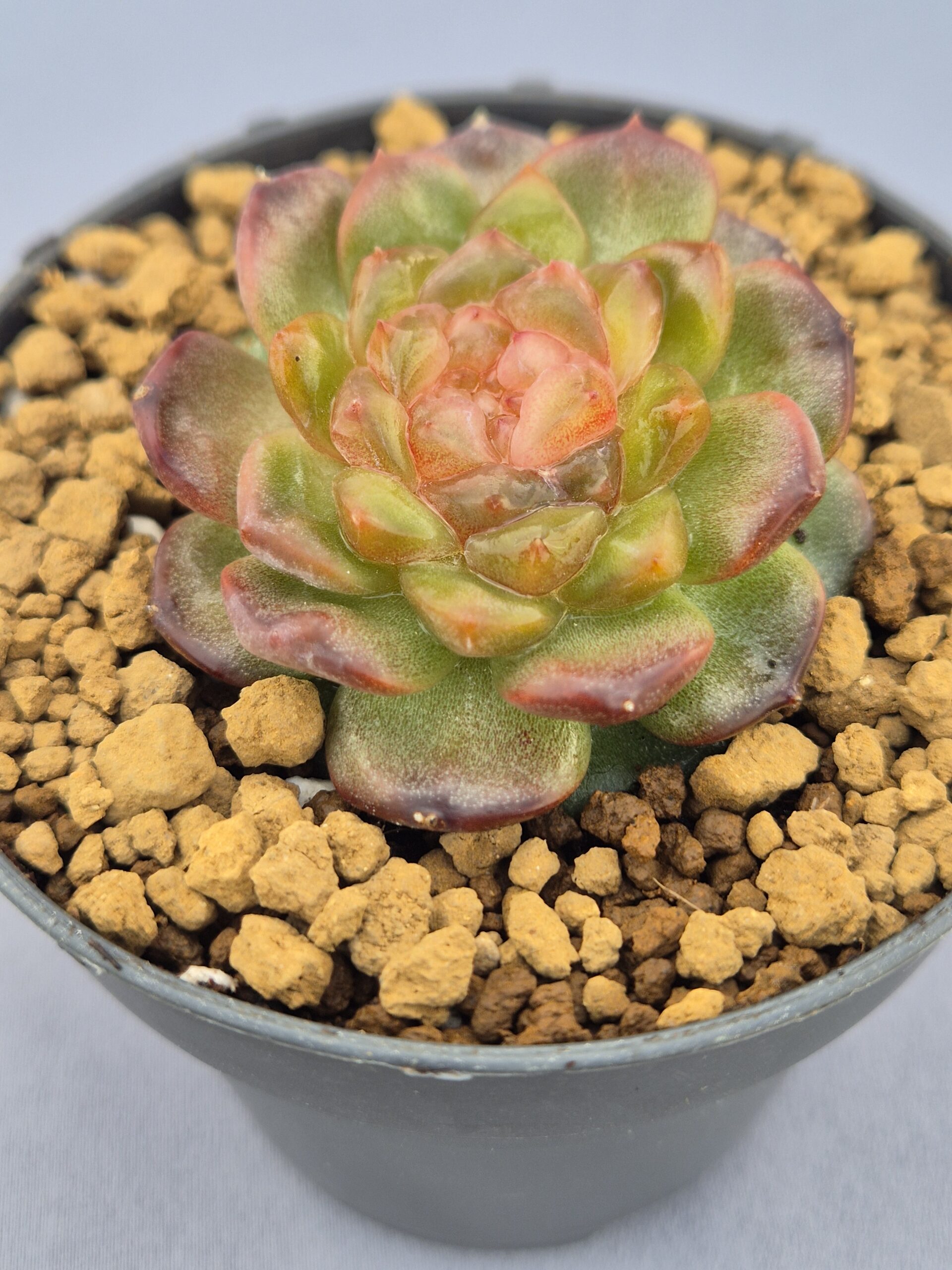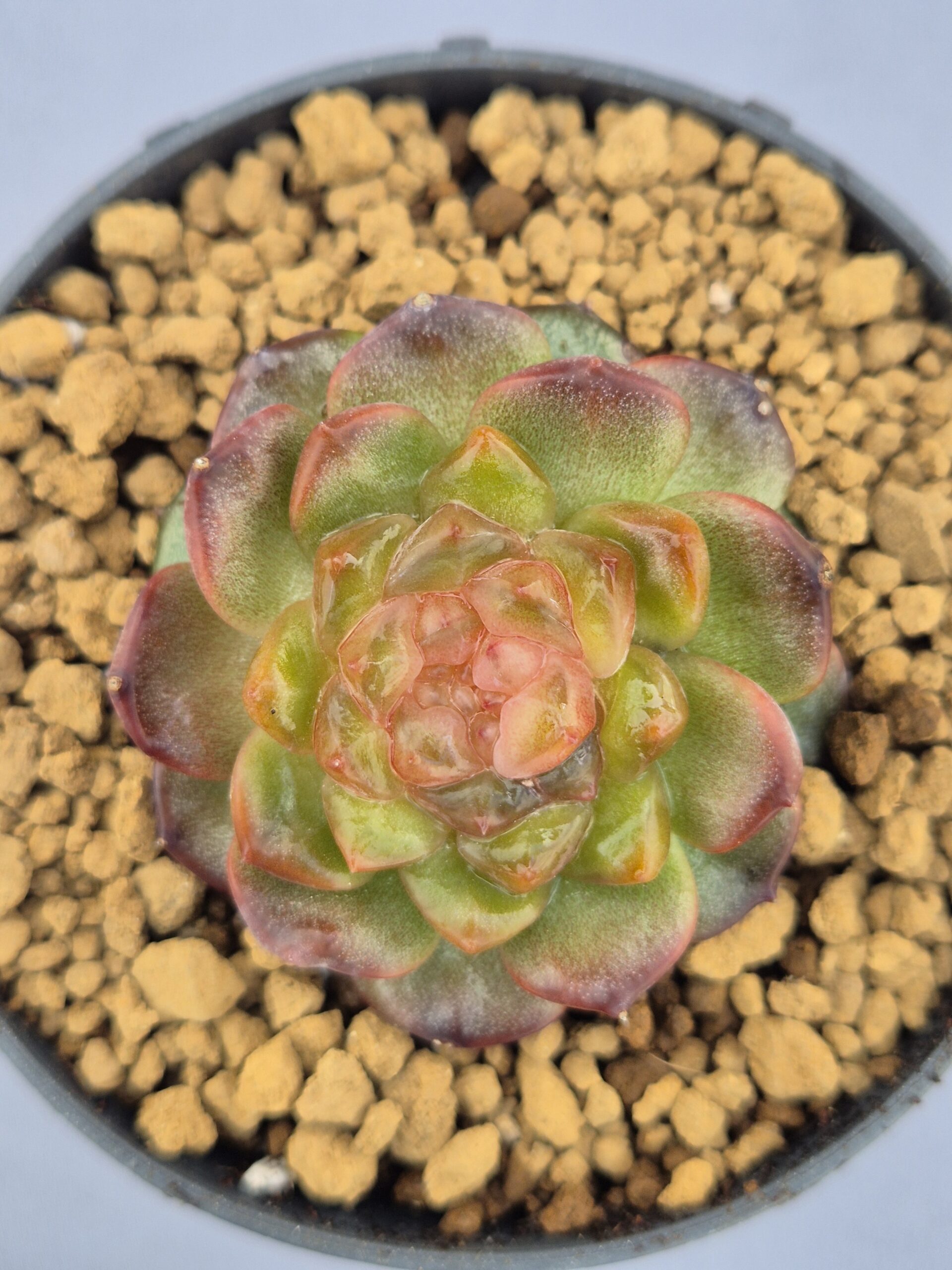 🎨Roseta compacta, de hojas gruesas con matices que van del verde claro al ámbar rosado con tonos cálidos y translúcidos.