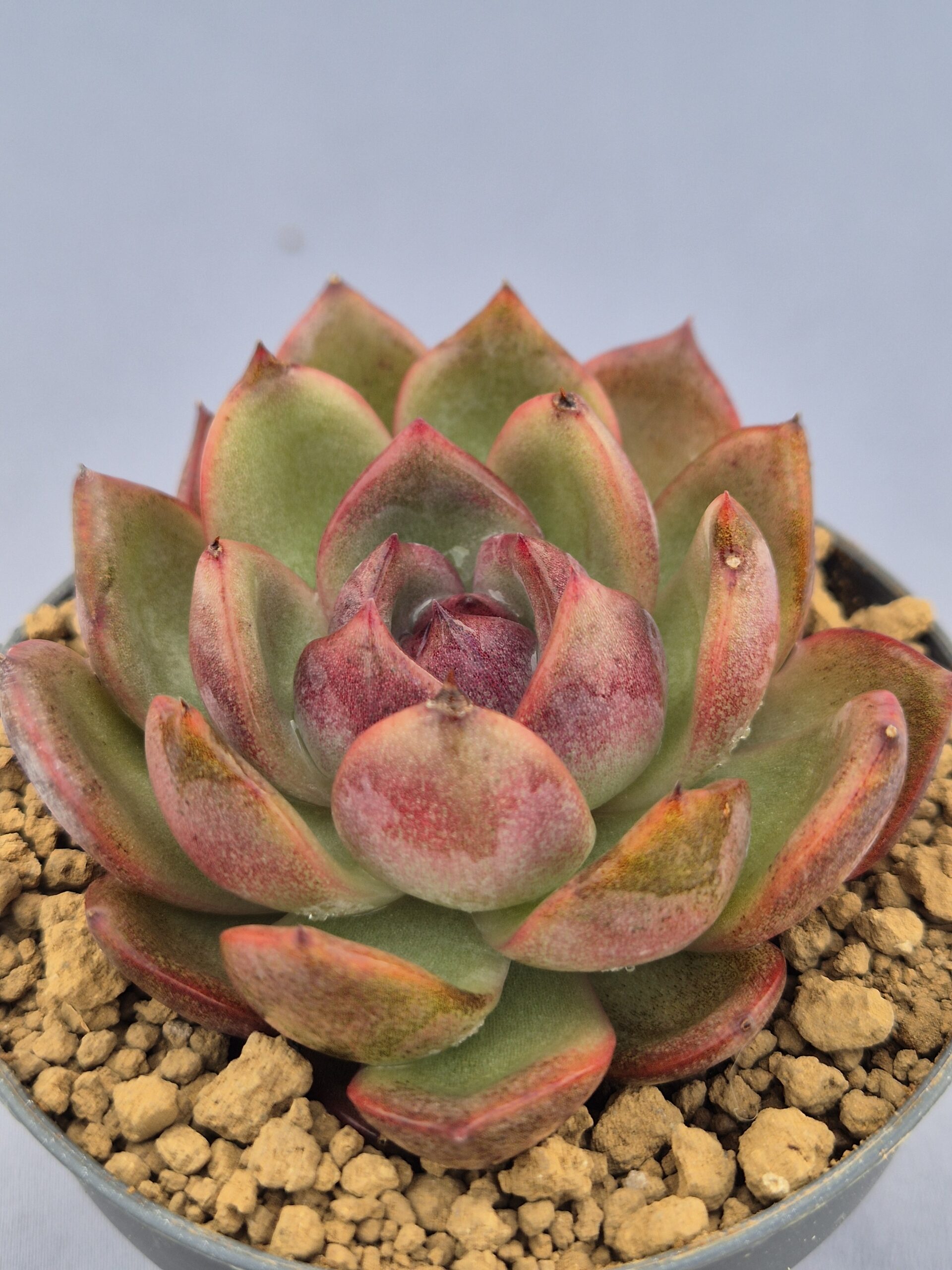 🎨Hojas carnosas de color verde pálido en el centro, con un degradado hacia bordes rojizos oscuros y casi púrpuras.