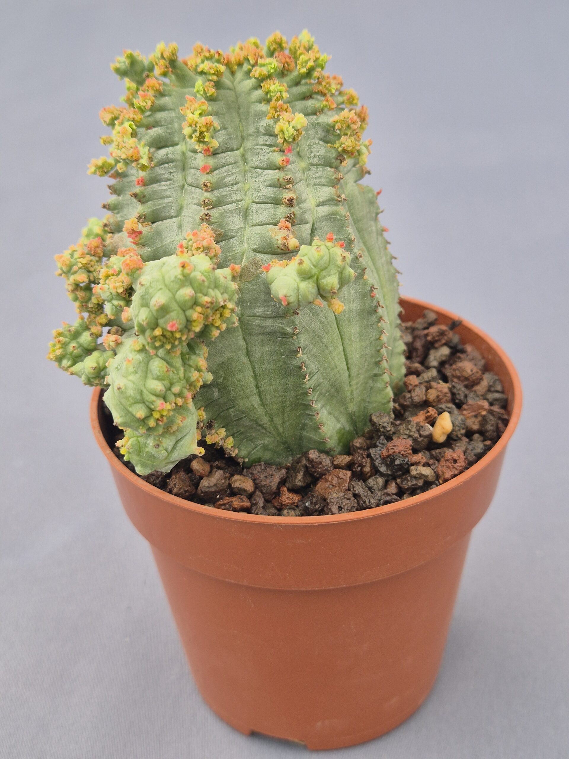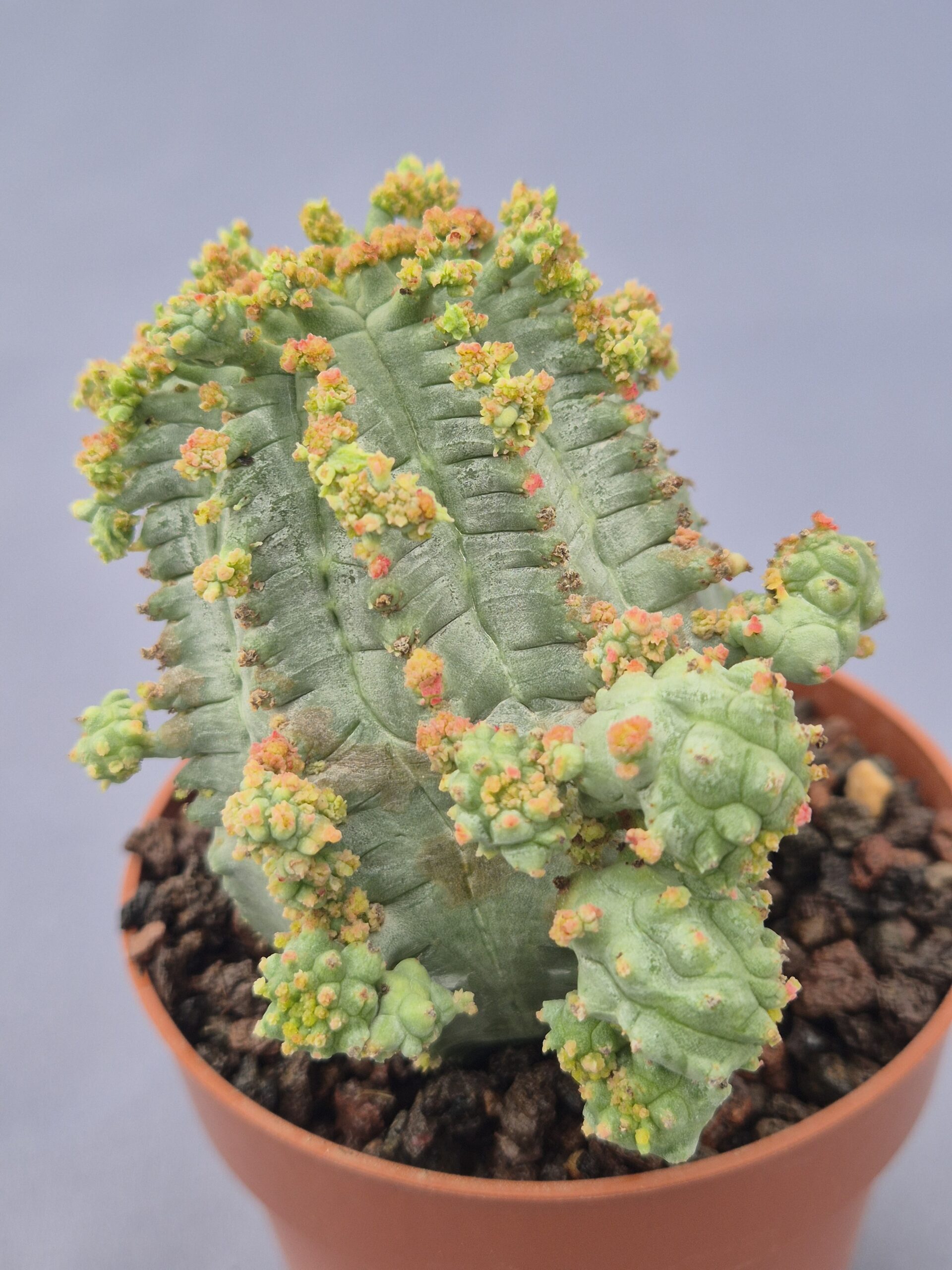 🌿Forma: tallo principal grueso y poligonal, con crecimiento irregular y protuberancias redondeadas que le confieren un aspecto casi coralino.