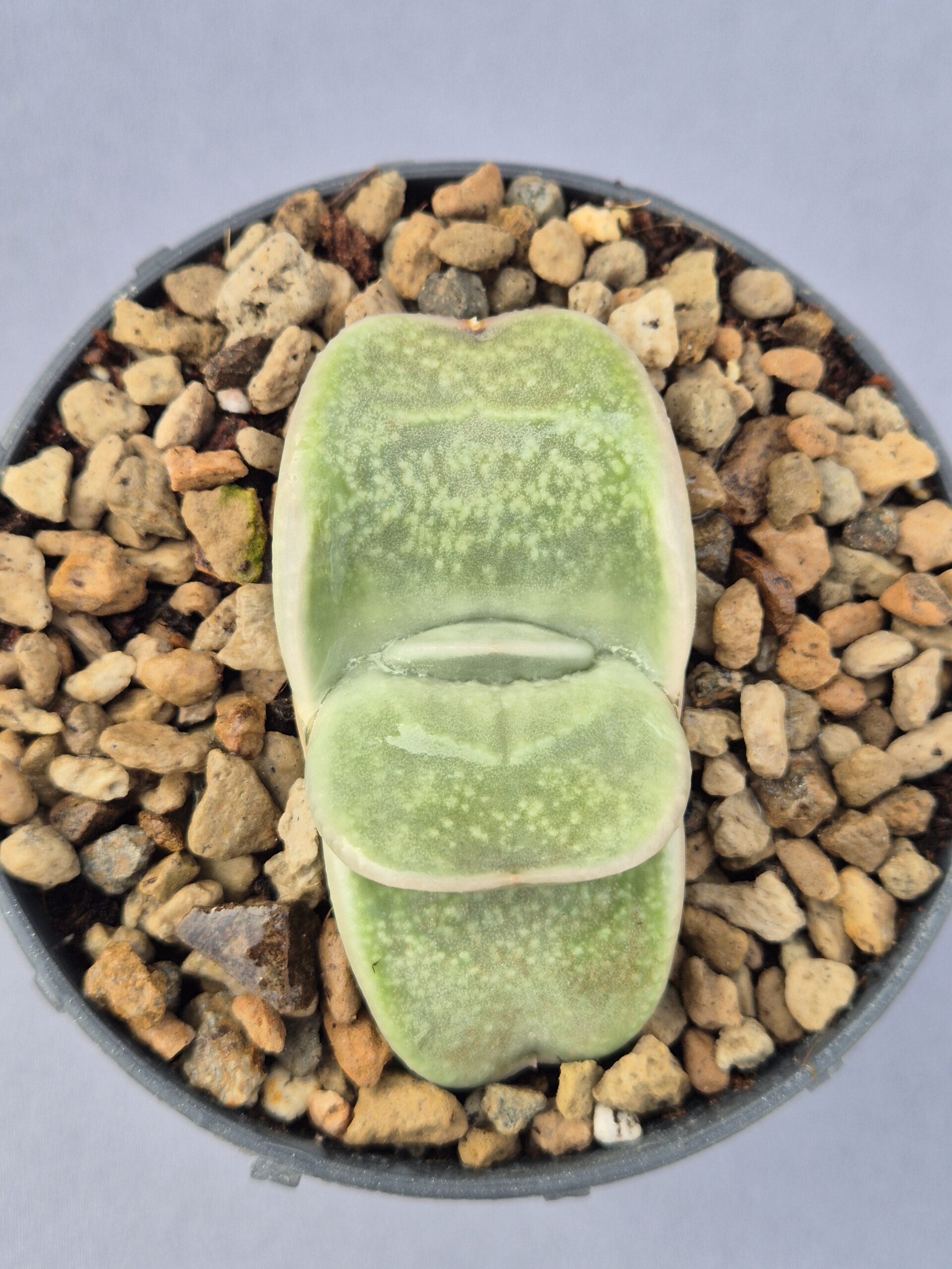 Esta Gasteria híbrida destaca por sus hojas gruesas y carnosas, decoradas con un moteado claro muy llamativo que crea un aspecto casi translúcido. Su forma compacta y su textura suave la convierten en una suculenta muy estética y fácil de ubicar en cualquier colección.