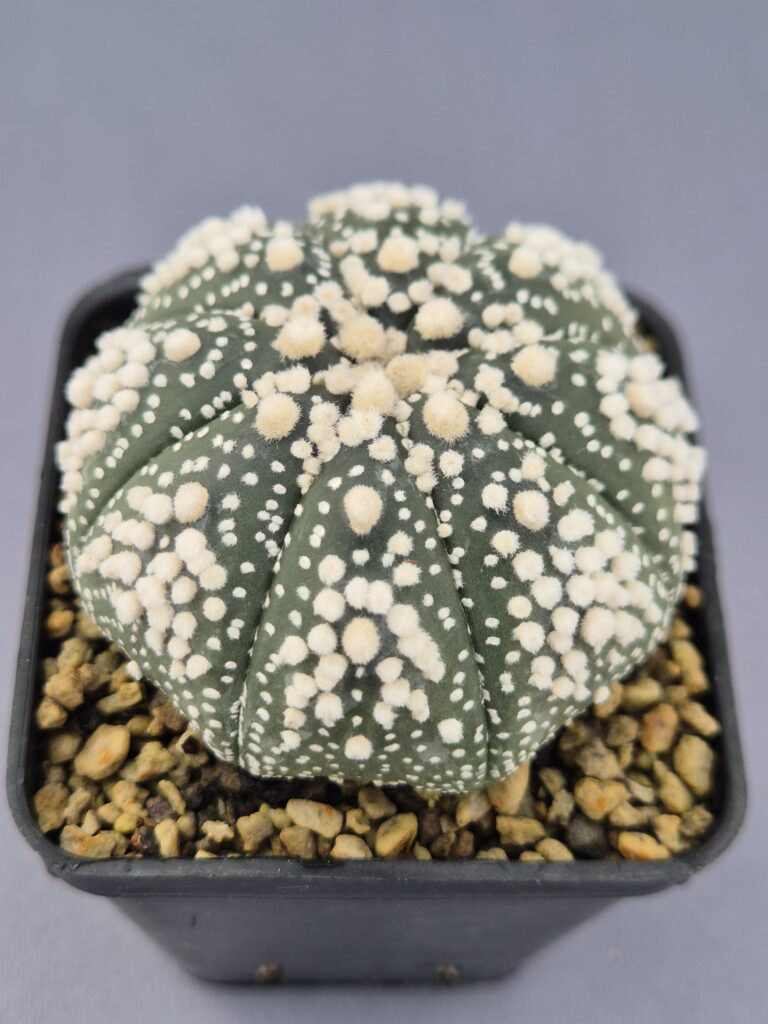 🌿Forma: Cuerpo estrellado con costillas marcadas y areolas lanosas. Espinas finas y ligeramente curvadas que añaden dinamismo.