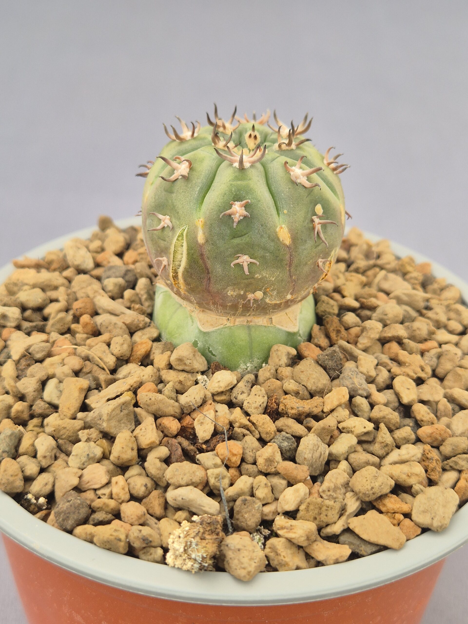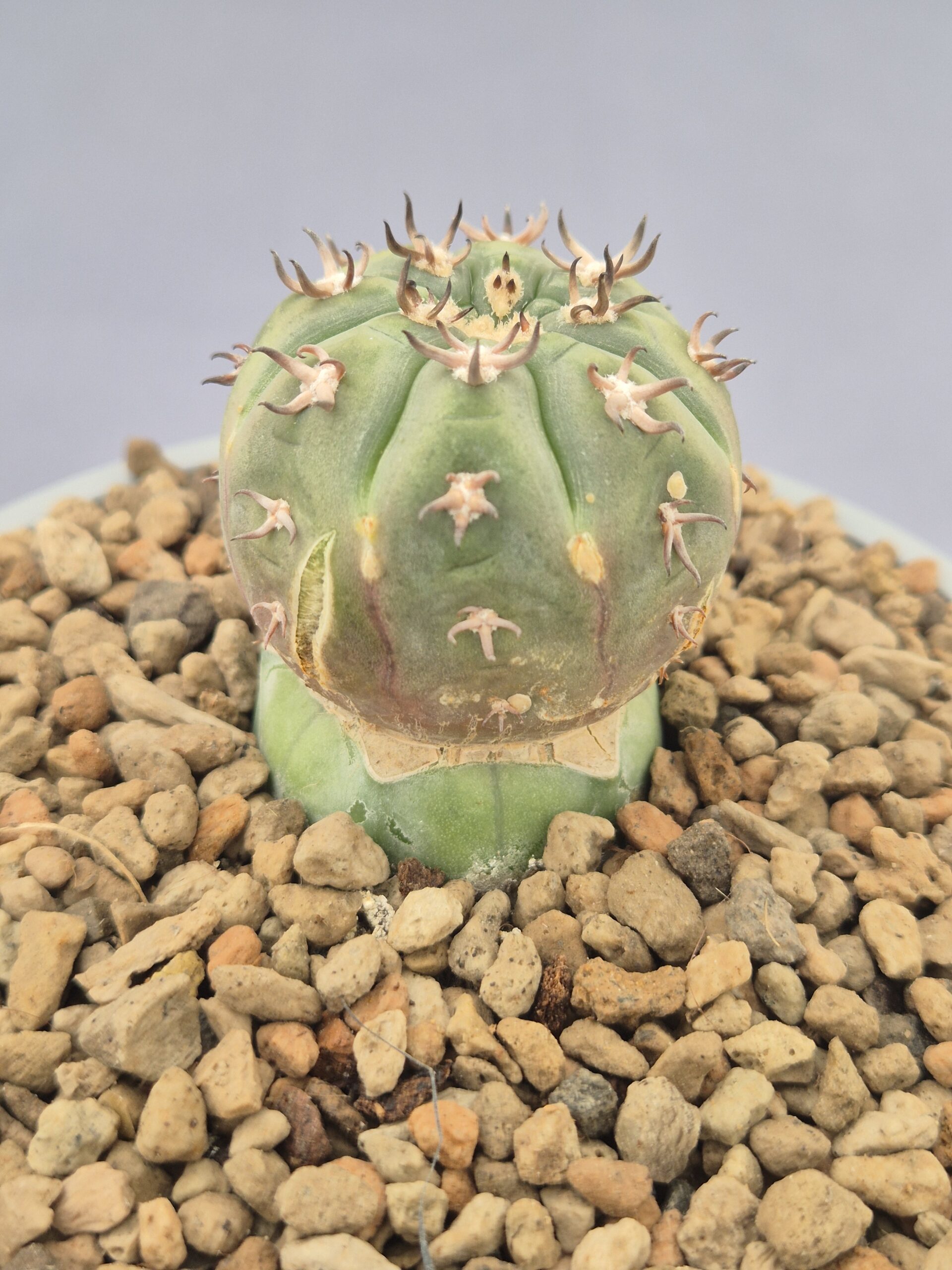 🌿Forma: cuerpo globoso ligeramente aplanado con costillas marcadas y areolas bien definidas.