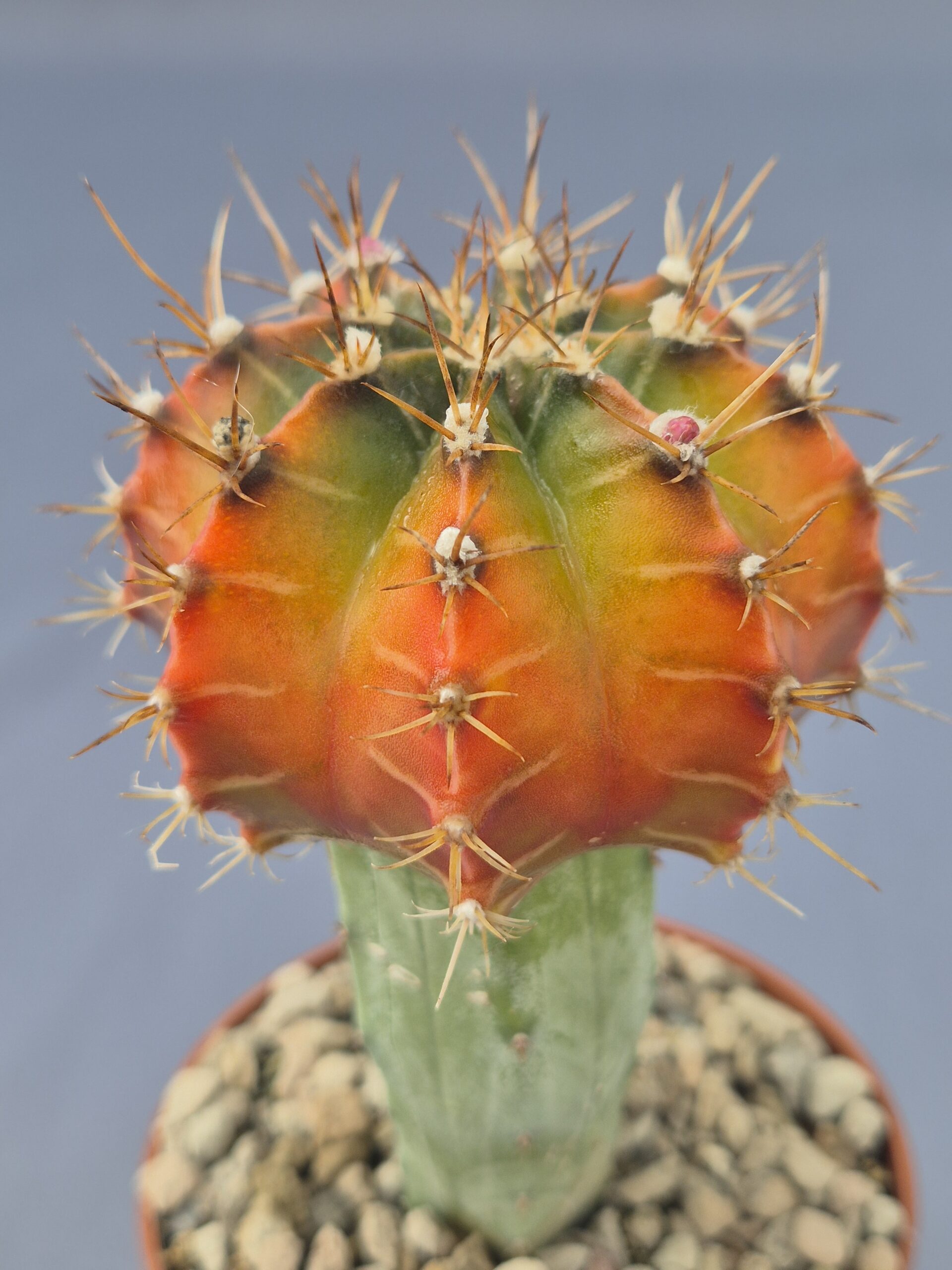 🌿Forma: cuerpo globoso ligeramente aplanado con costillas bien definidas y areolas discretas, sostenido sobre un patrón que favorece su desarrollo.