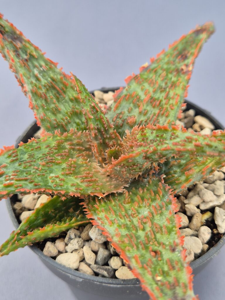 🌿Forma: Roseta compacta formada por hojas carnosas y erectas, ligeramente redondeadas en la parte superior.