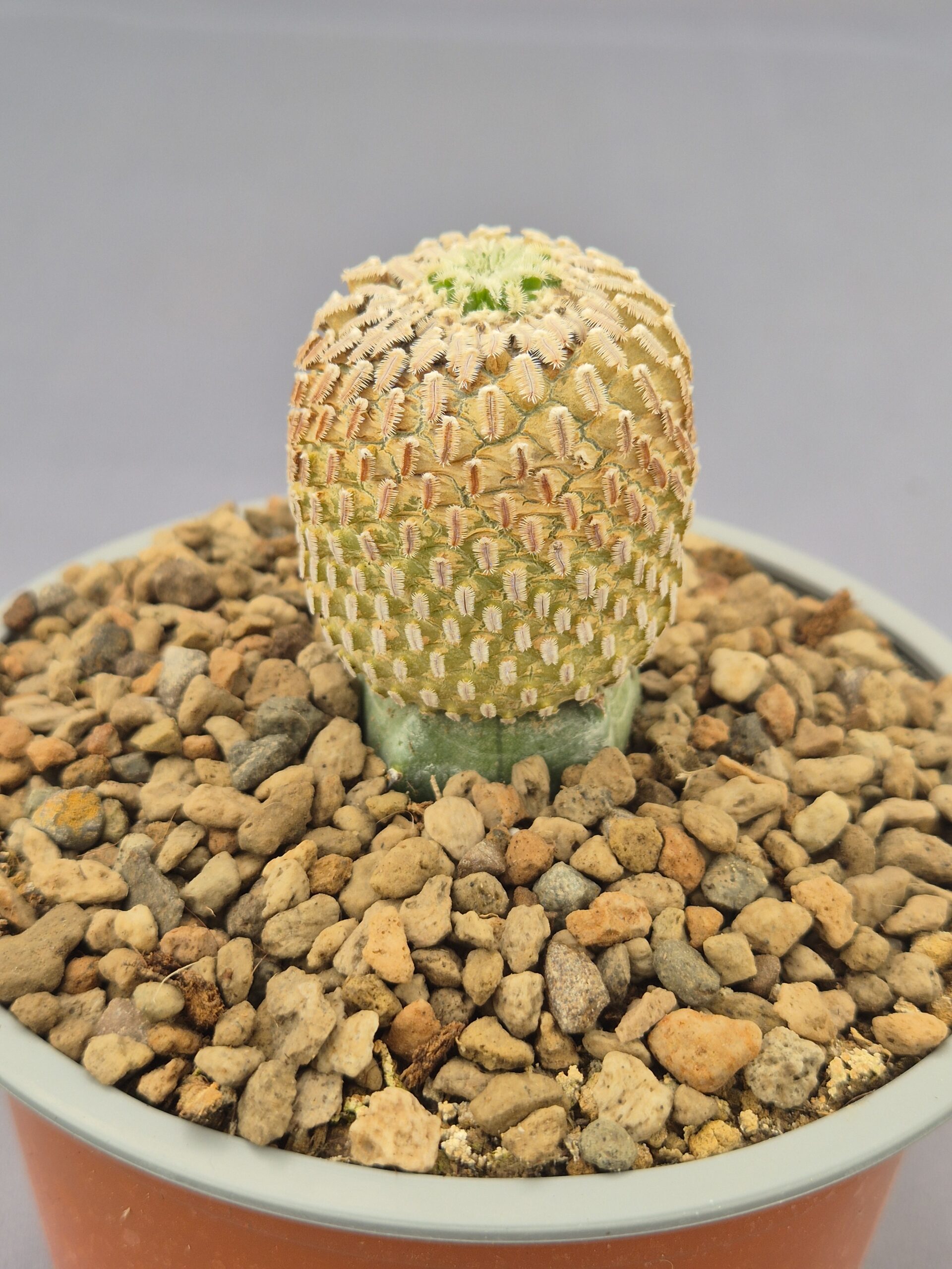 🌿Forma: cuerpo globoso y aplanado, con tubérculos pequeños y bien organizados que mantienen una simetría muy definida.