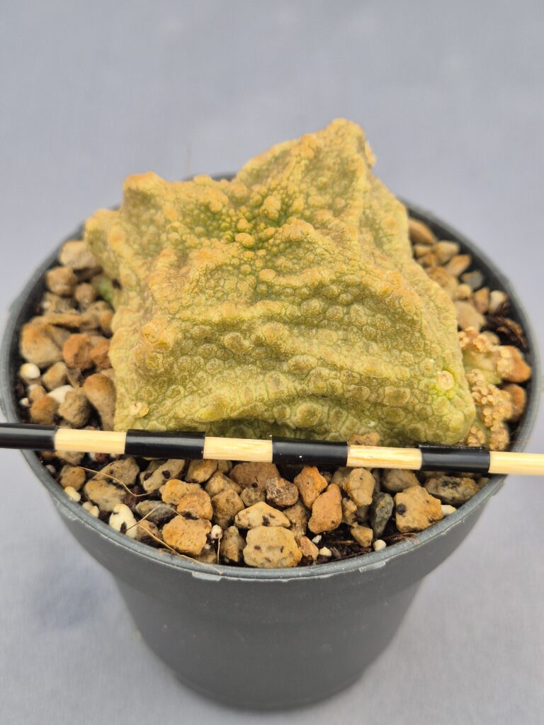 🌿Forma: Cuerpo globoso y compacto, con superficie verrugosa típica de la especie. Crecimiento muy lento y extremadamente estable.
