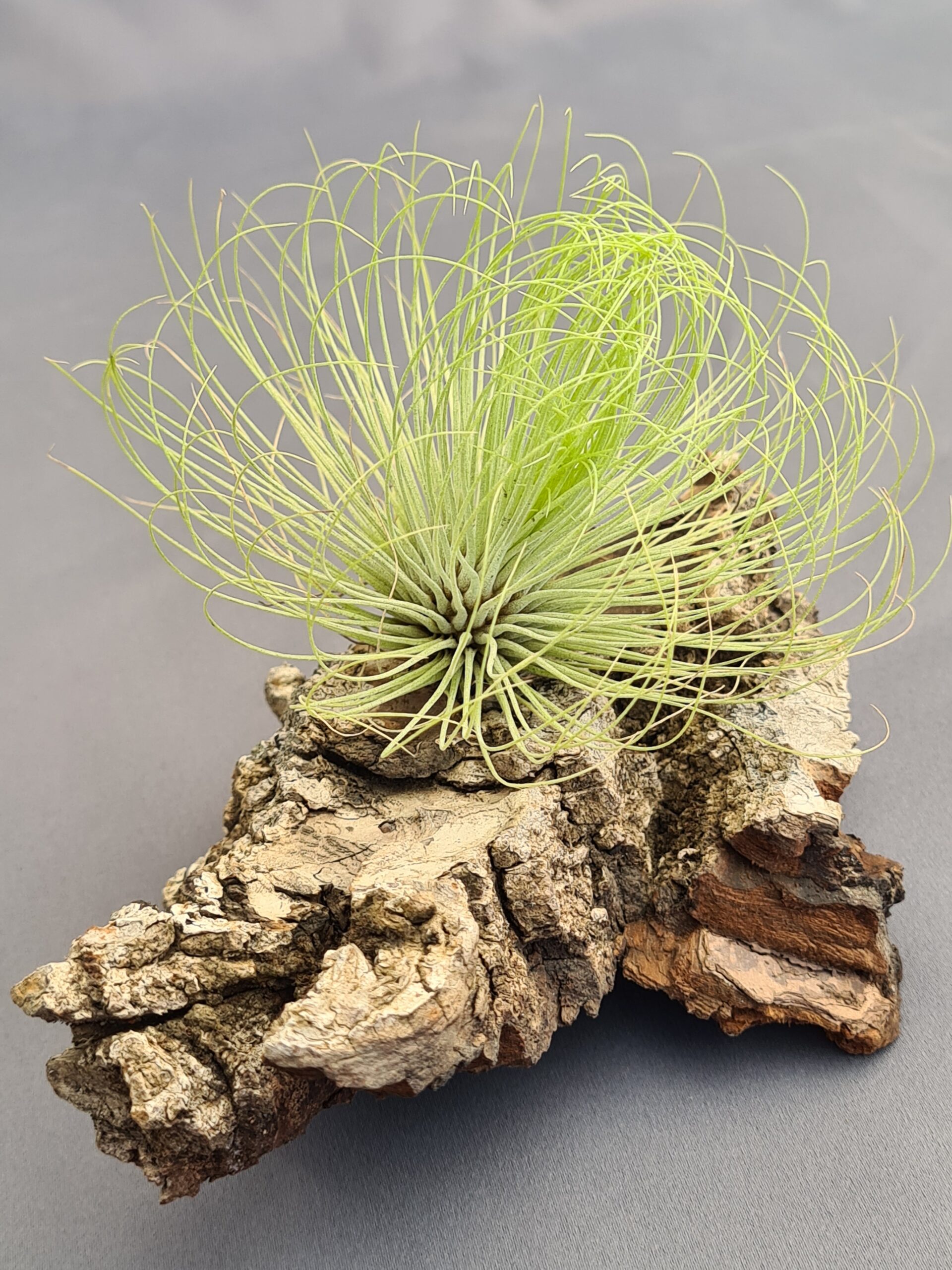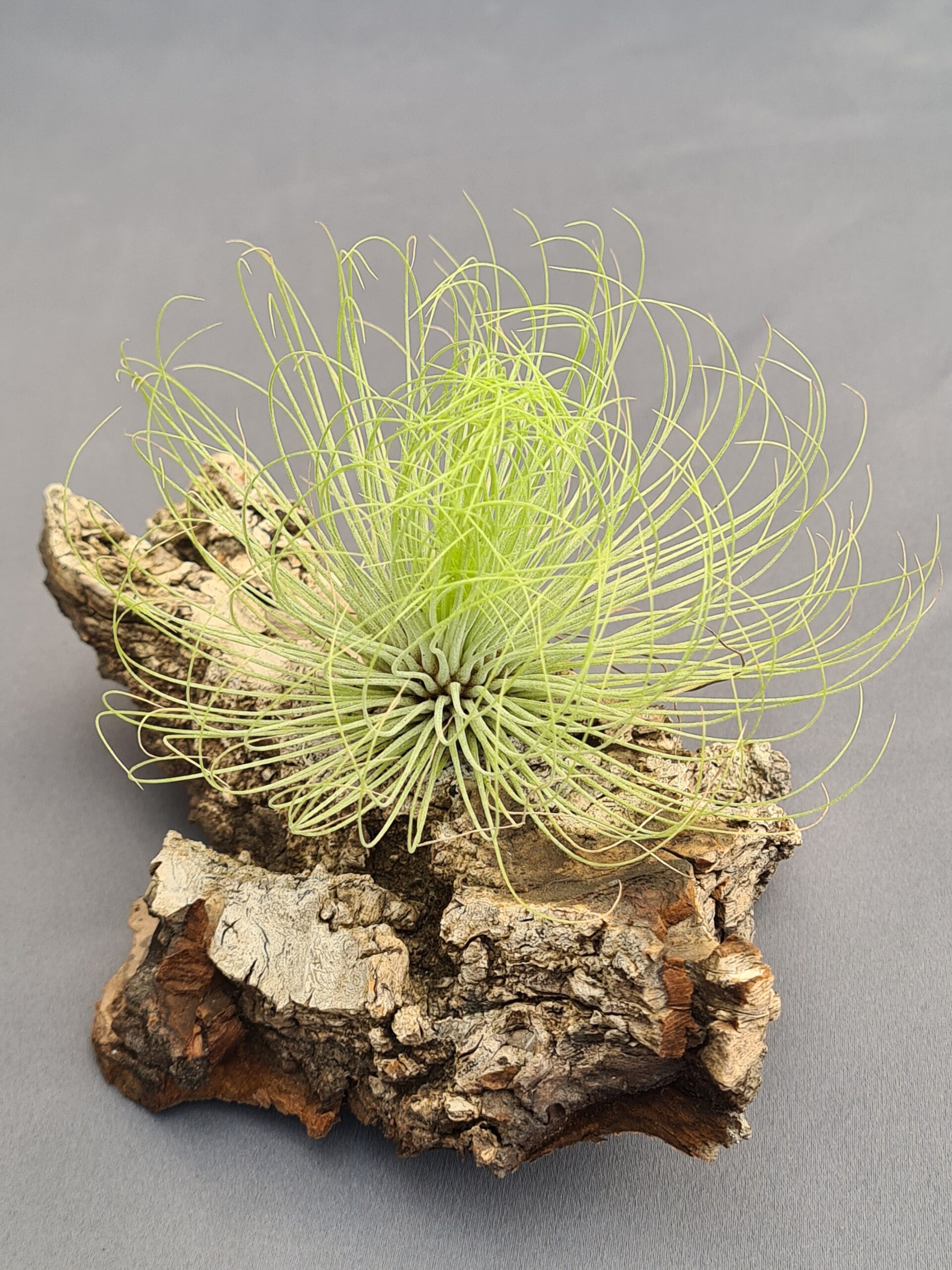 Esta encantadora Tillandsia llama la atención por su silueta ligera y viva. Sus hojas finas, alargadas y muy flexibles forman una roseta aireada que parece moverse incluso en reposo. Su color verde brillante aporta frescura y energía, creando una pieza delicada, dinámica y llena de vitalidad natural.