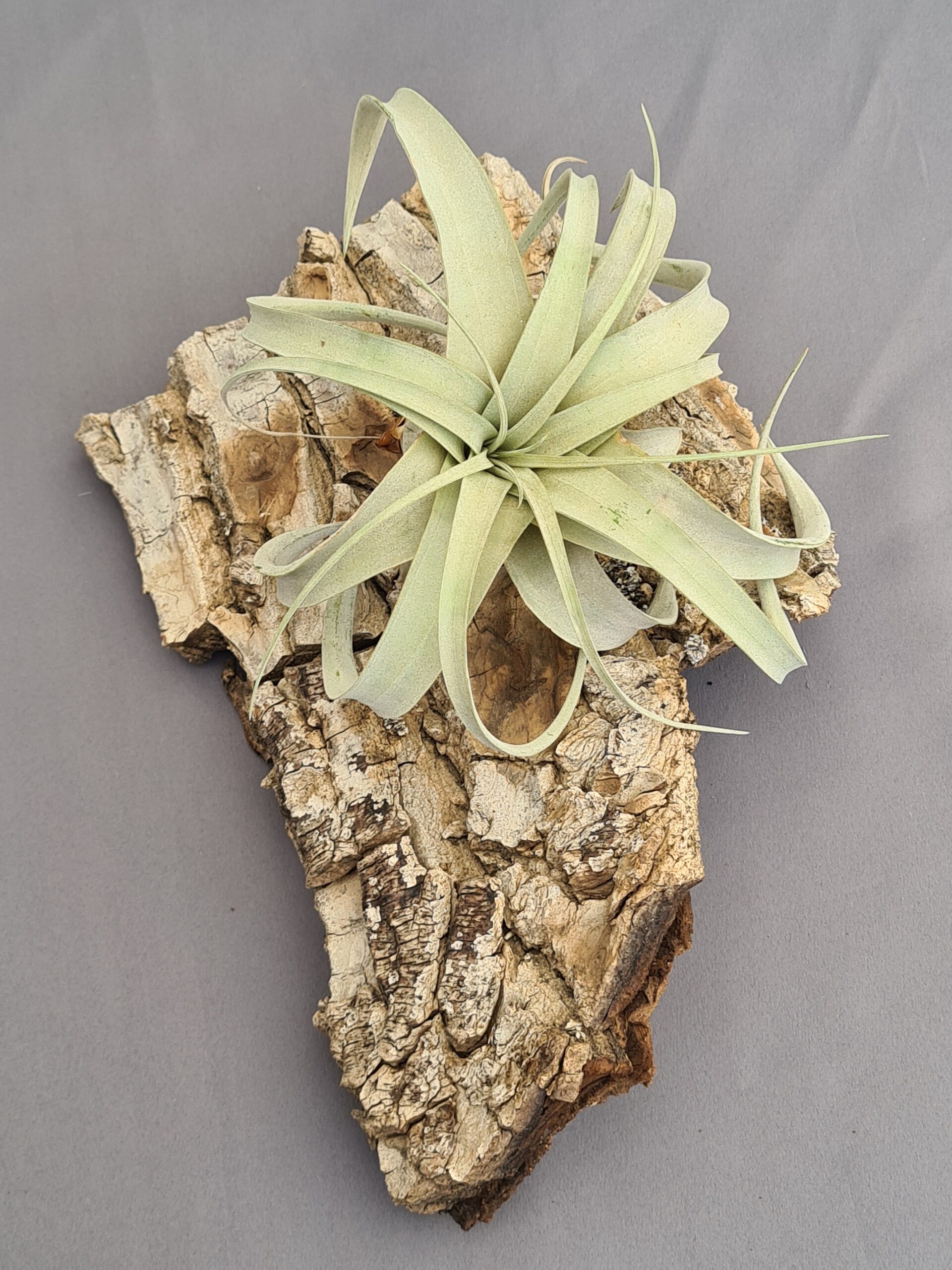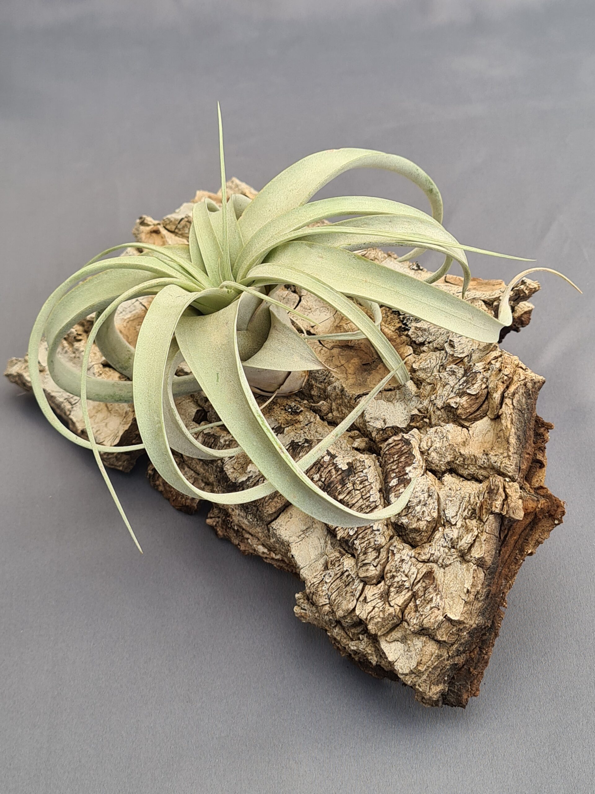 Esta majestuosa Tillandsia es una auténtica joya botánica. Sus hojas anchas y elegantes se curvan suavemente hacia abajo, formando una roseta perfectamente equilibrada que transmite armonía y presencia. Su color verde grisáceo, con un sutil tono plateado, le aporta un aire sereno y sofisticado que convierte a la Xerographica en una pieza decorativa por excelencia. Es una planta imponente, escultórica y capaz de elevar cualquier espacio con su sola presencia.