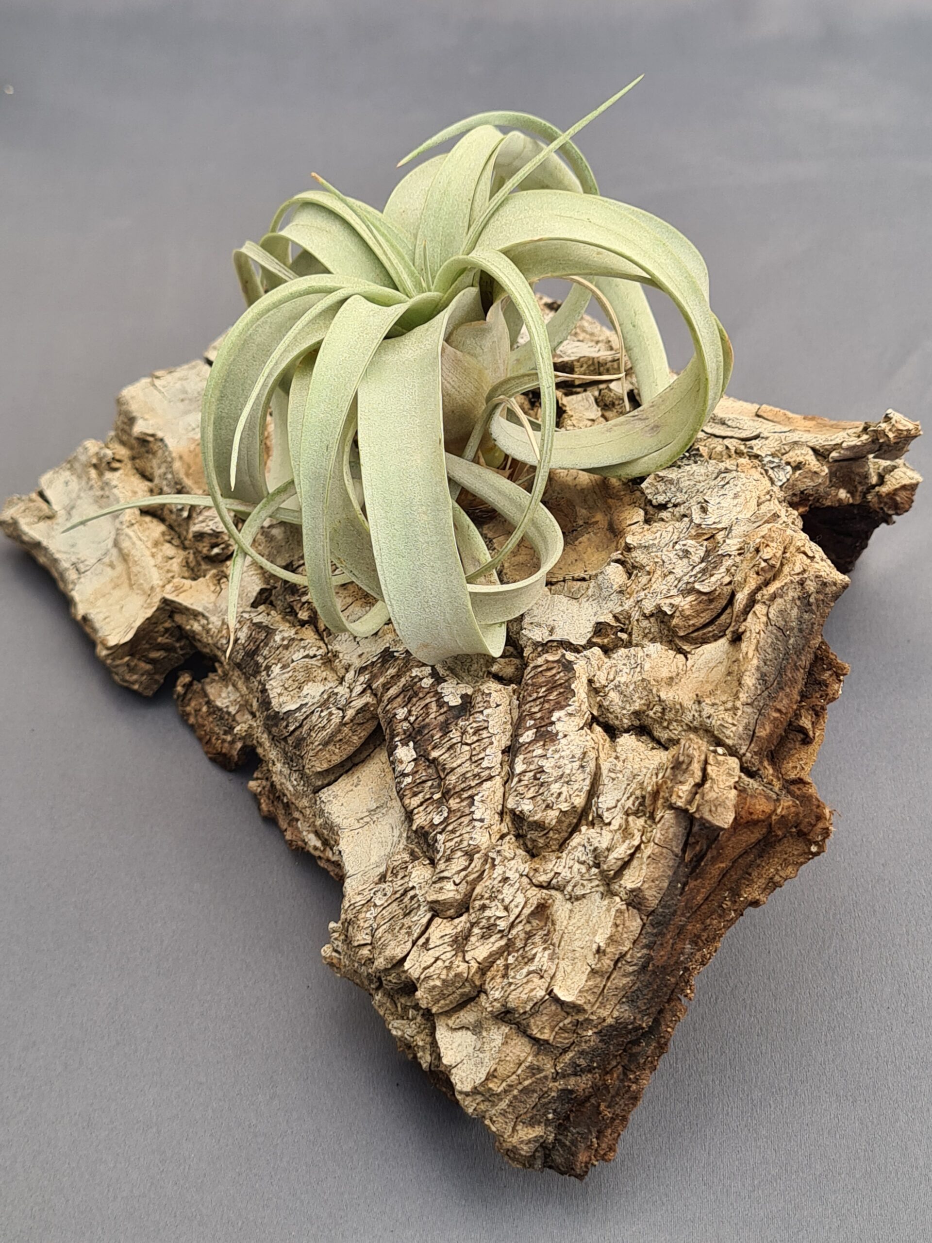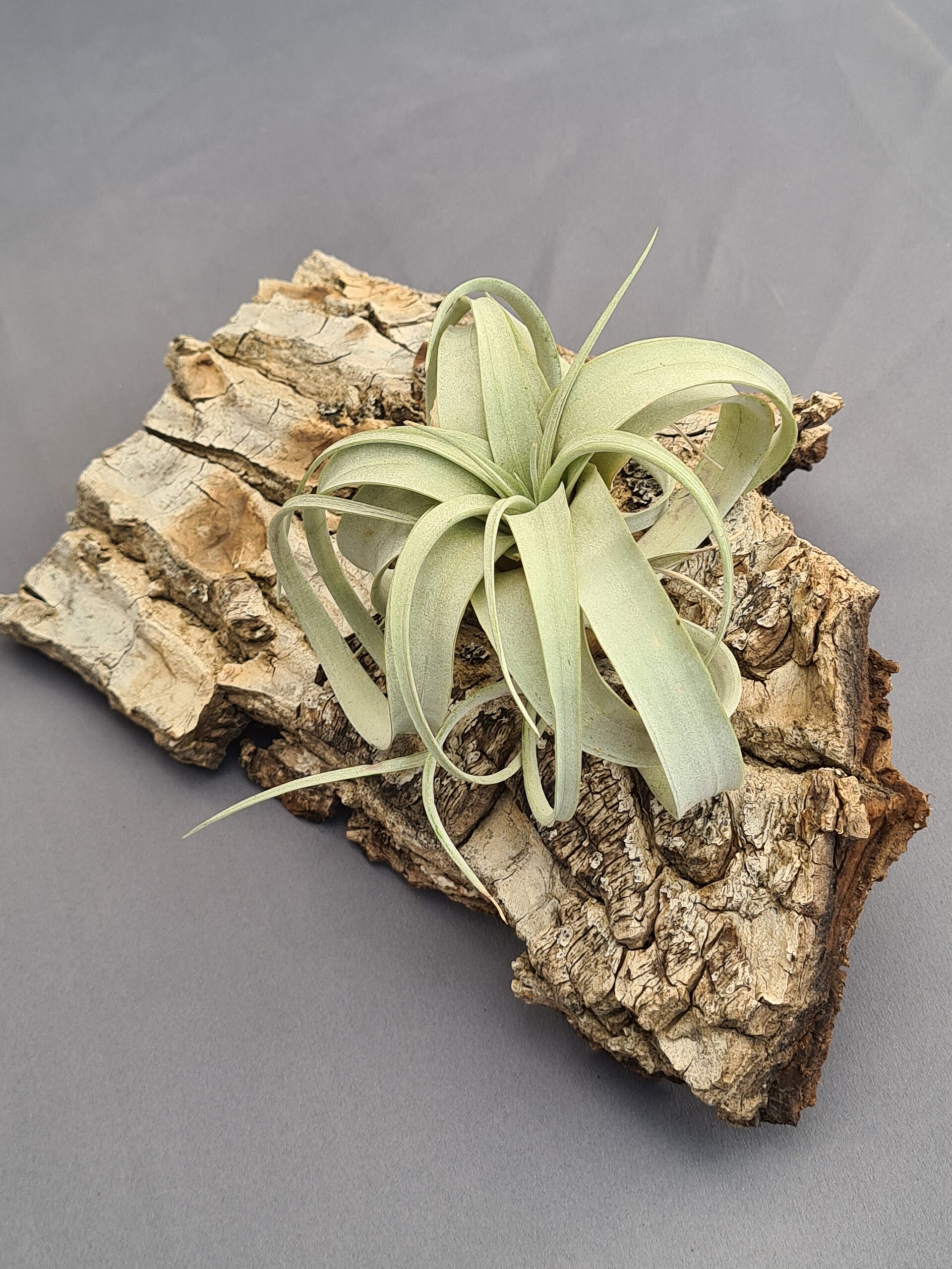 Esta majestuosa Tillandsia es una auténtica joya botánica. Sus hojas anchas y elegantes se curvan suavemente hacia abajo, formando una roseta perfectamente equilibrada que transmite armonía y presencia. Su color verde grisáceo, con un sutil tono plateado, le aporta un aire sereno y sofisticado que convierte a la Xerographica en una pieza decorativa por excelencia. Es una planta imponente, escultórica y capaz de elevar cualquier espacio con su sola presencia.