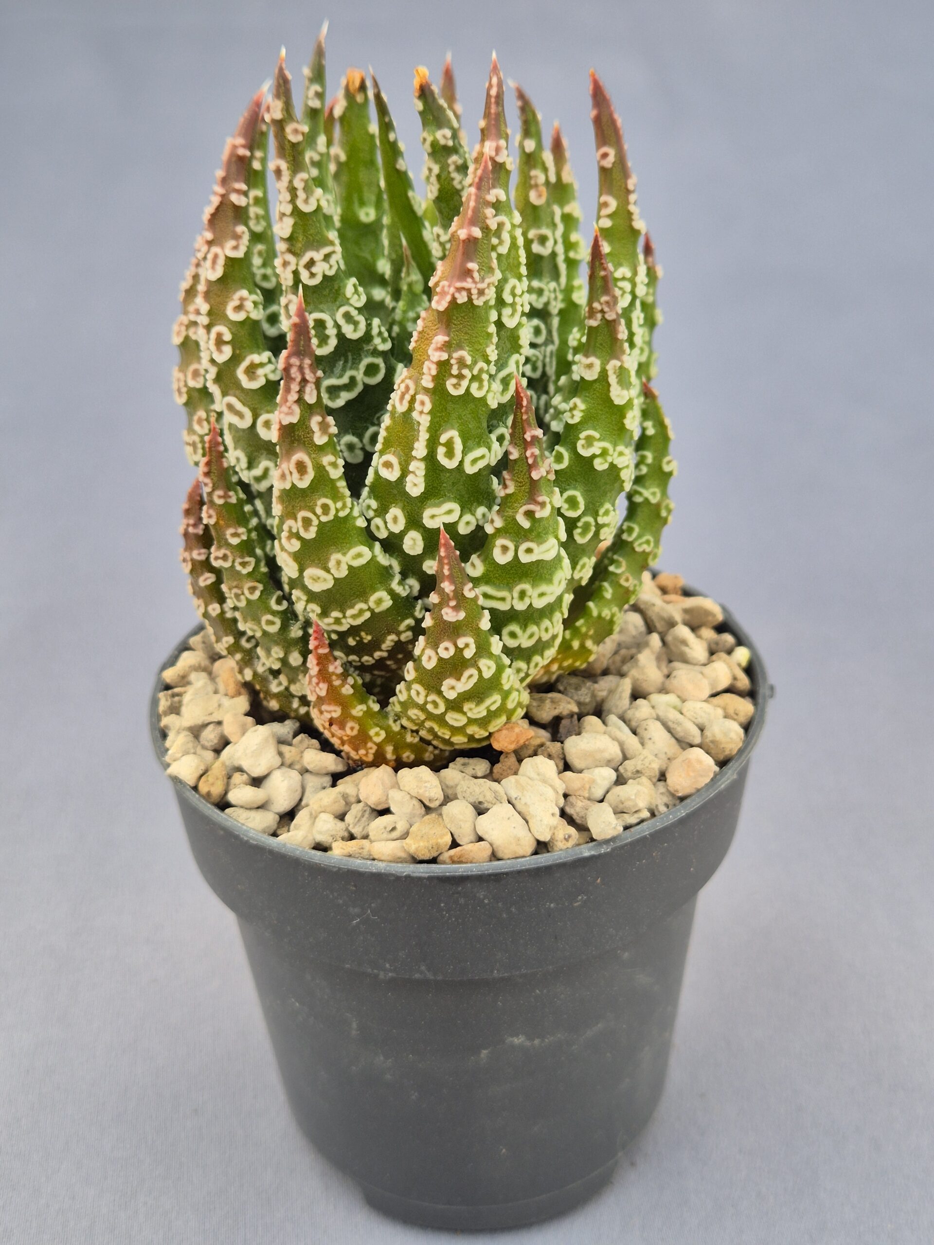 Esta Tulista pumila donuts híbrida destaca por su patrón de tubérculos circulares tipo “donut”, una característica muy apreciada en los cultivares modernos. Su porte compacto y su intensa textura la convierten en una planta llamativa incluso entre colecciones especializadas.