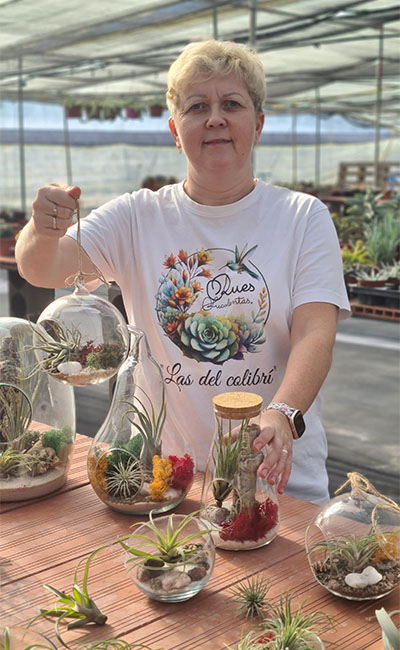 Descubre con nosotros el fascinante universo vivo y lleno de color de nuestras suculentas, plantas aéreas y terrarios artesanales.