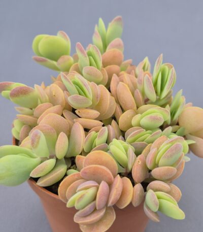 Kalanchoe rotundifolia es una suculenta de porte arbustivo ligero, muy apreciada por la forma redondeada de sus hojas y su elegante contraste de colores. Su aspecto natural y ligeramente silvestre aporta frescura y personalidad a cualquier colección.